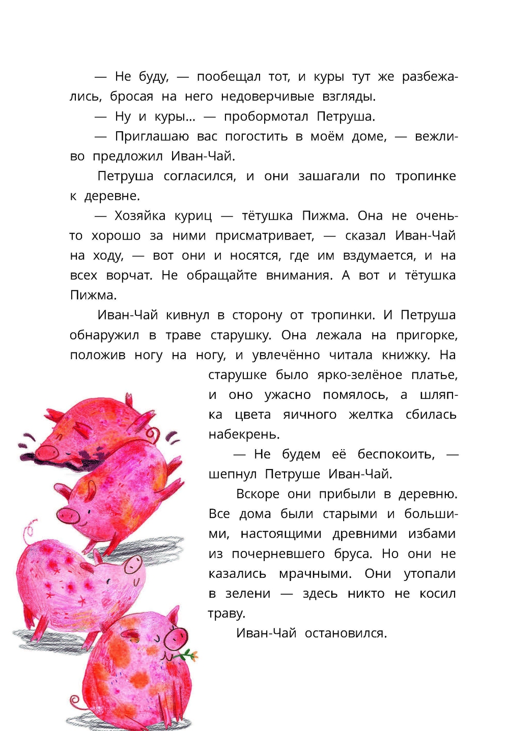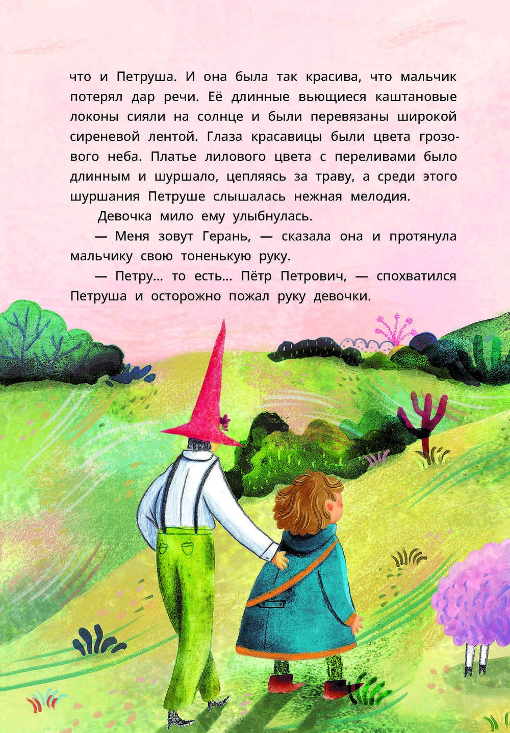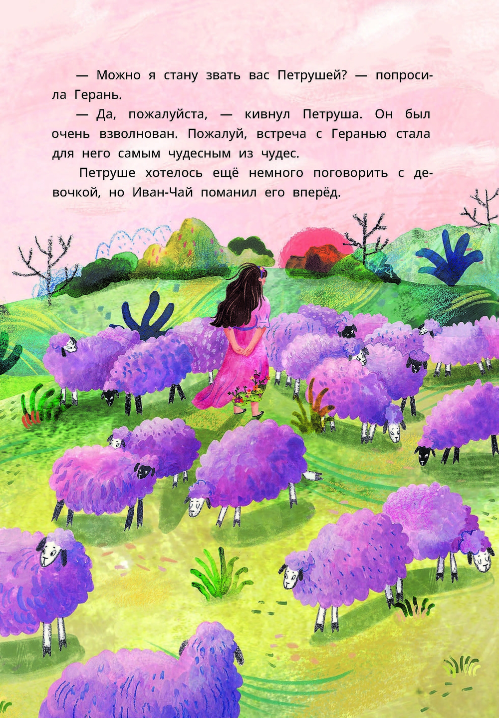 Маленький отважный путешественник Петруша во время своих странствий набредает на необычную деревушку. Все животные и птицы, которые живут здесь, на самом деле – волшебные цветы. Душистый клевер превращается в малинового кролика, крошечные незабудки становятся голубыми котятами, а луговая герань – лиловой овечкой. У каждого животного есть свой Хозяин, вот только фиолетовые козы-колокольчики почему-то пасутся