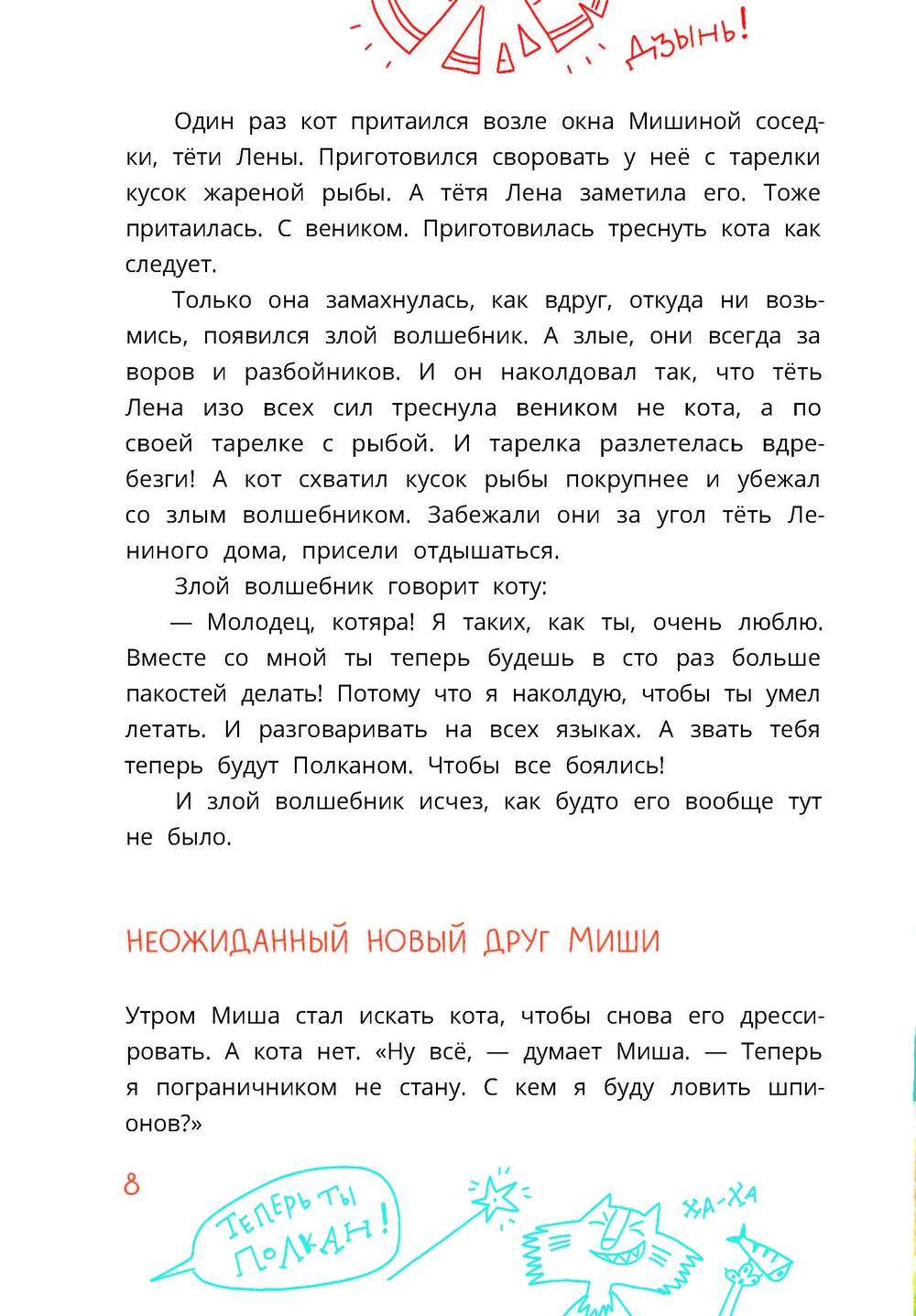Внимание-внимание! Кто это там безобразничает? А кто совершает отважные подвиги? Да это же второклассник Миша Пуговкин, хитрый кот Полкан и добрейшей души собака Мурка! Как-как их зовут? Мы точно никого не перепутали? Миша проводит время с пользой – летает на самолёте в далёкую Бразилию, ловит шпионов на границе, путешествует на подводной лодке и спасает цирковых зверей. И когда он только успевает рассказывать истории о своих весёлых приключениях?