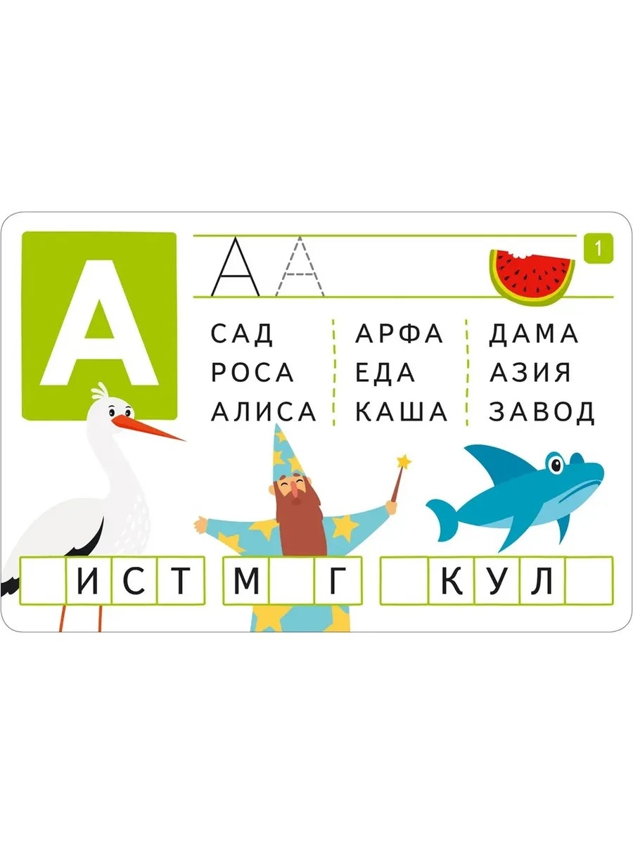 Набор предназначен для подготовки ребёнка к слоговому чтению. В наборе содержится 36 двухсторонних карточек, задания на которых позволят малышу в игровой форме легко и непринуждённо выучить буквы практически до автоматизма. Во время игры ребёнок запомнит графический образ буквы, научится писать буквы и находить их в словах. Для закрепления пройденного материала в наборе есть карточки с игровыми заданиями, которые не только научат, но и развлекут вашего ребёнка.