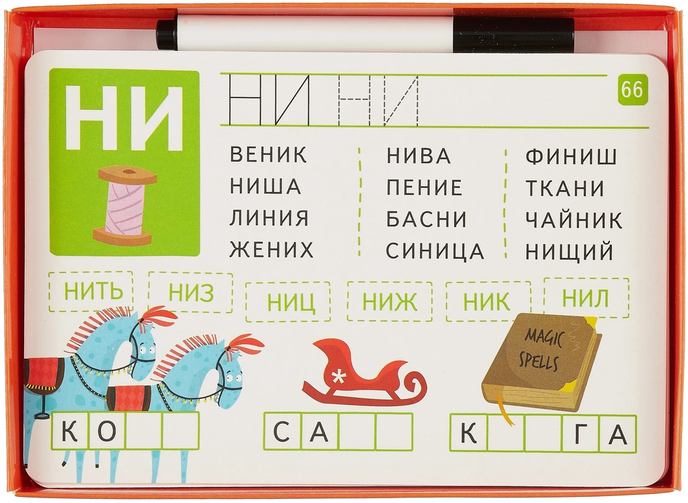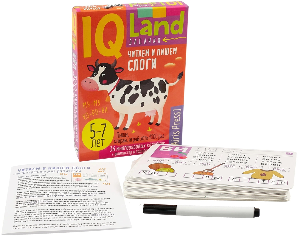 IQ Многоразовые карточки с маркером. Читаем и пишем слоги