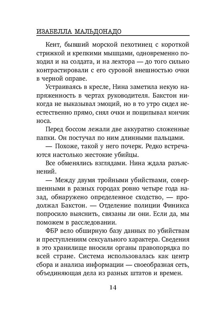 Нина Геррера – та, кому удалось сбежать от загадочного серийного убийцы по прозвищу Шифр, а затем ликвидировать его. Теперь она входит в группу профайлеров ФБР.