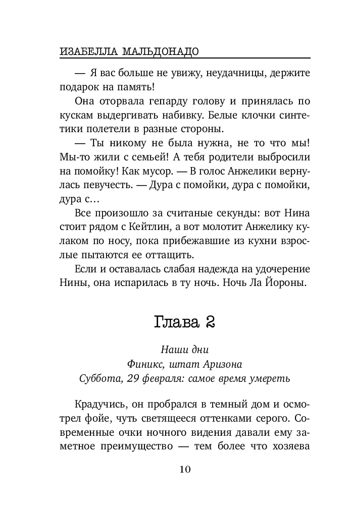 Нина Геррера и ее коллеги из Отдела поведенческого анализа быстро выясняют, что он вышел на охоту... 28 лет назад. Убивает по всей стране, и каждое место преступления напоминает страшную легенду о Ла Йороне – призраке плачущей женщины. Легенду, так пугавшую Нину в детстве, когда она была беззащитным ребенком. Инсценировки настолько хороши, что до сих пор никто не догадался свести эти дела воедино. И самое странное – убийства совершаются каждый високосный год, 29 февраля...