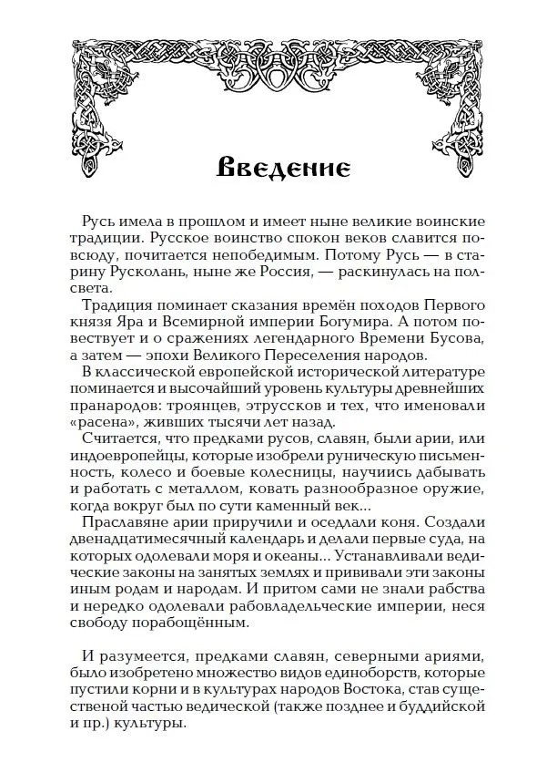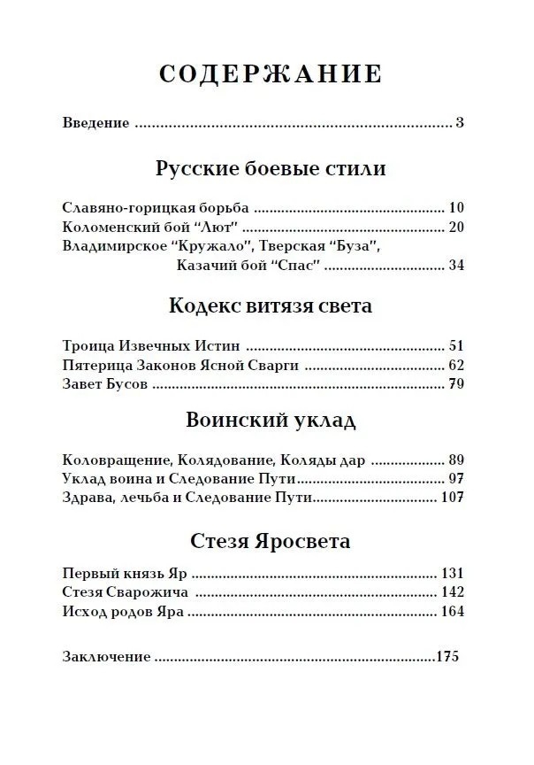 В книге рассказывается о славянских боевых стилях: славяно-горице, коломенском, владимирском и тверском стилях борьбы, о казачье борьбе. Также о воинском укладе славян, об их древней философии, принципах жизни; о пути, следуя коему, воин может развить свои тело и дух, открыть сознание.