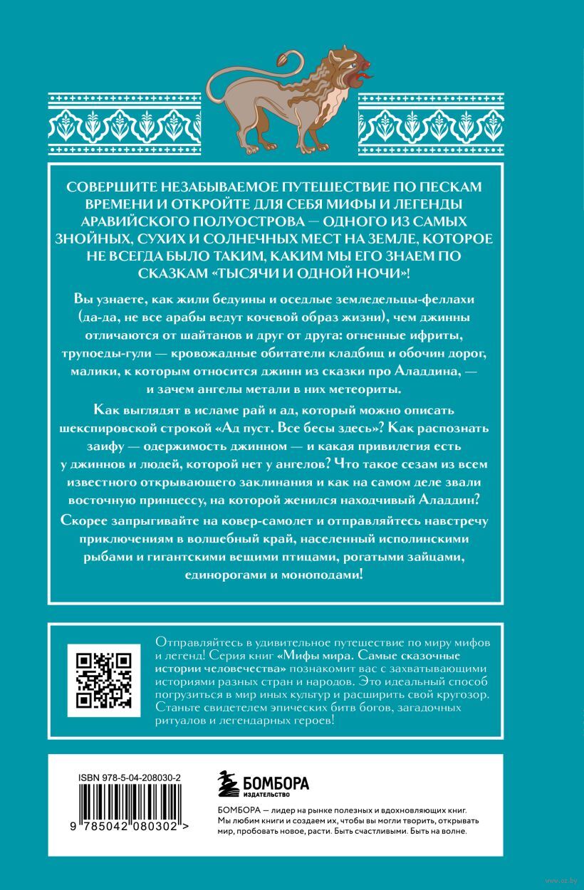 Эта уникальная книга познакомит вас с удивительной, многослойной и причудливо-прекрасной мифологией Древней Аравии, подарившей миру любимые многими сказки "Тысяча и одна ночь", образ джинна, возникающего из бутылки или лампы, приключения Аладдина и Синдбада-морехода и, конечно, учение пророка Мухаммеда.