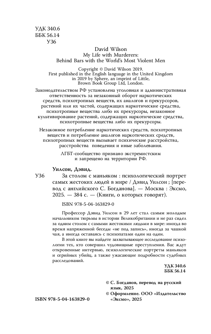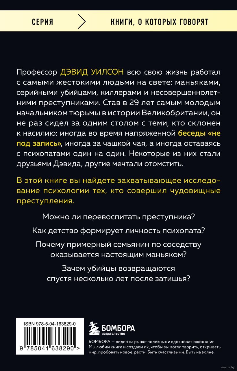 Профессор Дэвид Уилсон в 29 лет стал самым молодым начальником тюрьмы в истории Великобритании и не раз сидел за одним столом с самыми жестокими людьми в мире: иногда во время напряженной беседы "не под запись", иногда за чашкой чая, а иногда оставаясь с психопатами один на один.