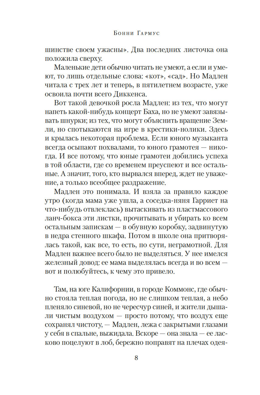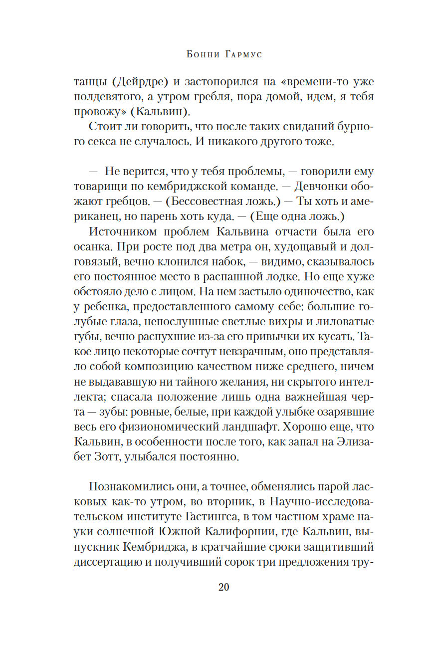 Тем временем ее пятилетняя дочь Мадлен, растущая под присмотром минно-разыскного пса по кличке Шесть-Тридцать, пытается найти в школьной библиотеке Набокова и Нормана Мейлера, а также выстроить родословное древо, на котором должно найтись место и без пяти минут нобелевскому лауреату по химии Кальвину Эвансу, и фее-крестной, и деду в полосатой тюремной робе, и бабке, укрывшейся от налоговой полиции в Бразилии...