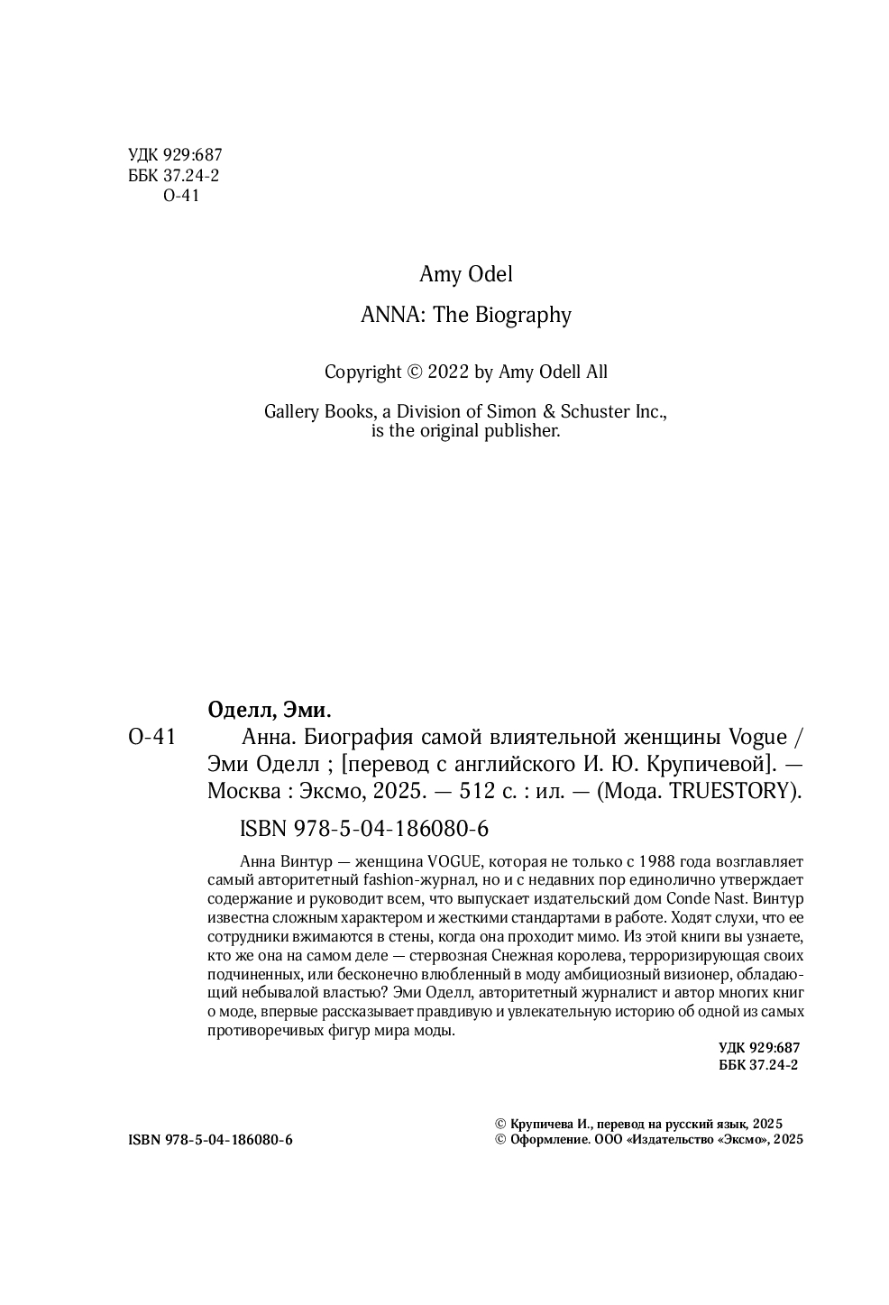 | Название в оригинале | ANNA The Biography by Amy Odel |