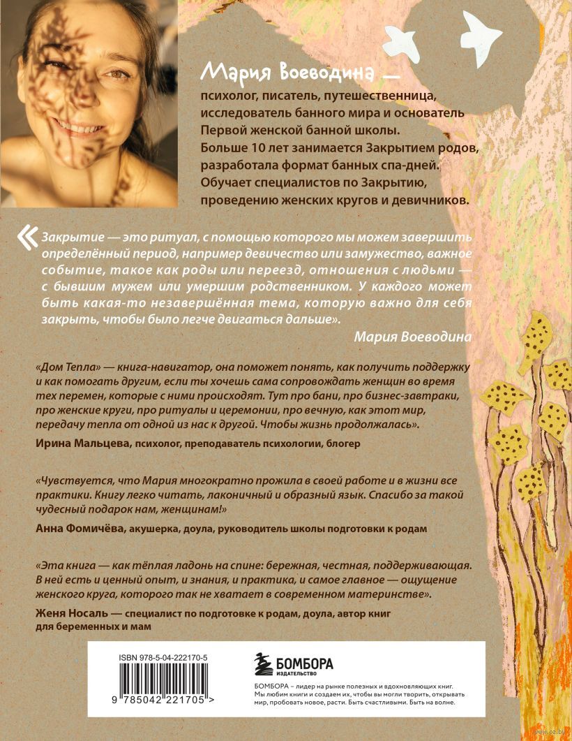Мария Воеводина – психолог, писатель, путешественница и исследователь банного мира, основатель женской банной школы. Если в первой своей книге "Магия мягкой бани" автор рассказывает, как побаловать парной близких людей и самой насладиться банными процедурами, то на этих страницах читатель откроет для себя целительный мир полного релакса, любви и понимания – уже сквозь призму профессиональной работы с клиентами. Опираясь на психологические знания, приёмы мягкой работы с подсознанием человека и многовековые банные традиции народов мира, Мария бережно и деликатно, рассказывает о том, как женщины могут поддержать друг друга в любой период жизни, в горе и радости. Вдумчиво изучив эту книгу, вы сами сможете проводить банные встречи для подруг и знакомых, сопровождать их в Закрытии родов и других важных жизненных переходах. А также устраивать женские круги, в том числе, и на коммерческой основе.