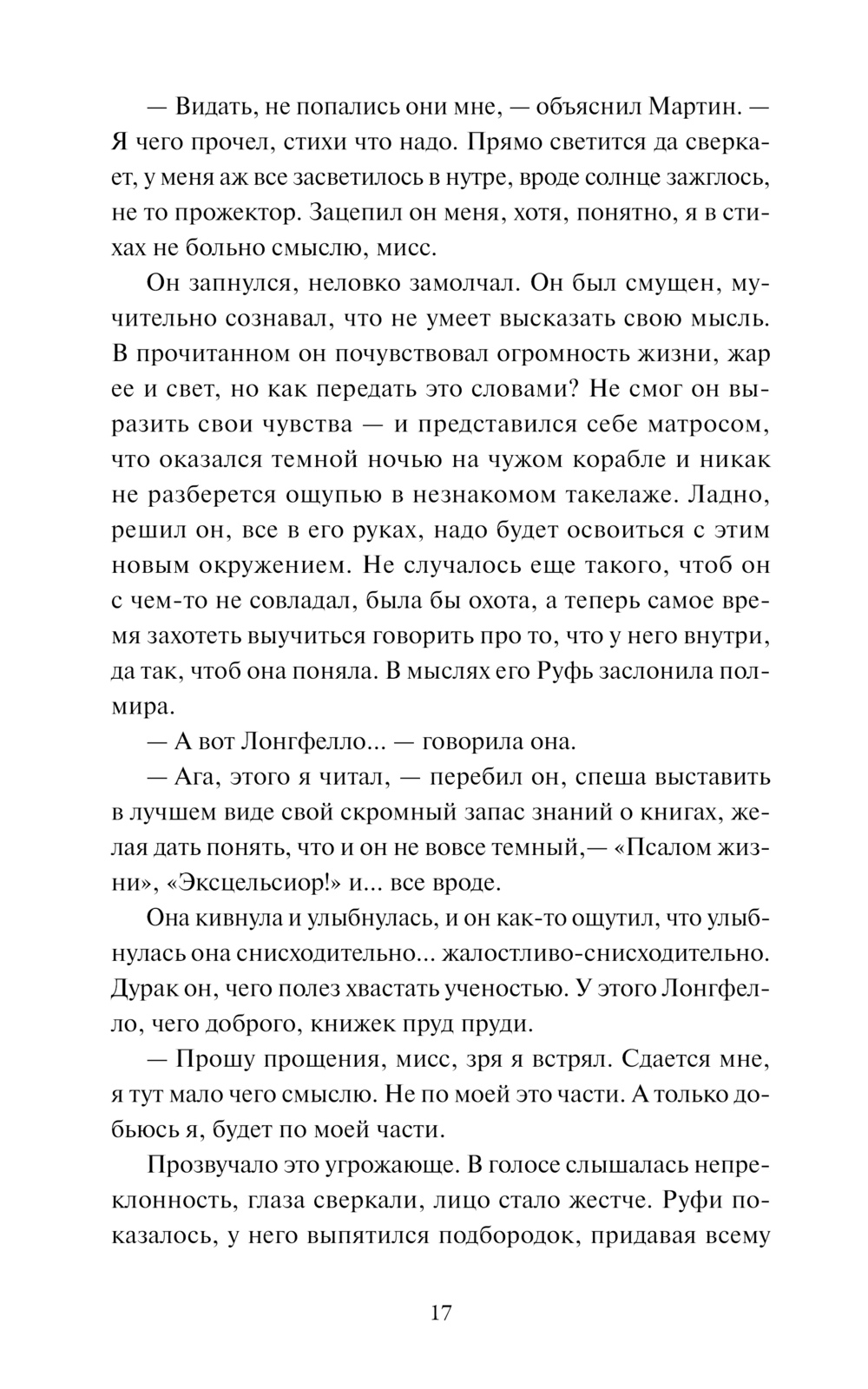 Мартин был доволен своей жизнью, даже не подозревая, какие таланты в нем скрыты. Он отправлялся в плавание, затем тратил все до копейки и вновь искал судно для работы. Все изменилось, когда Мартин встретил Руфь и влюбился в нее без памяти. Чтобы добиться ее расположения, он решает пробиться в мир литературы. Но способен ли успех принести счастье?