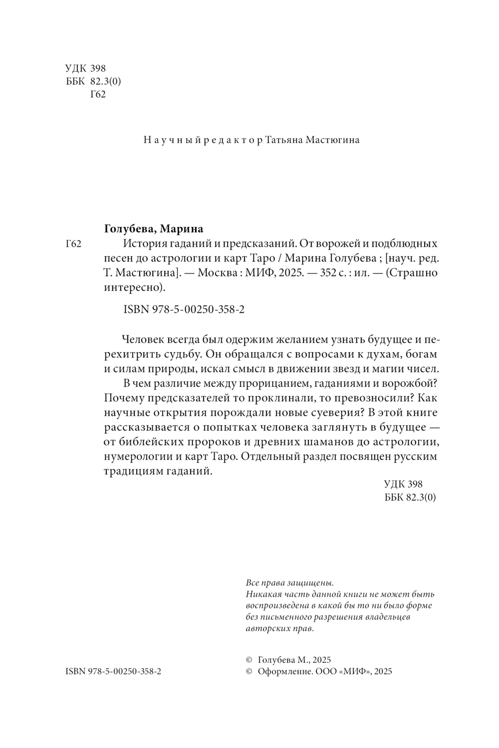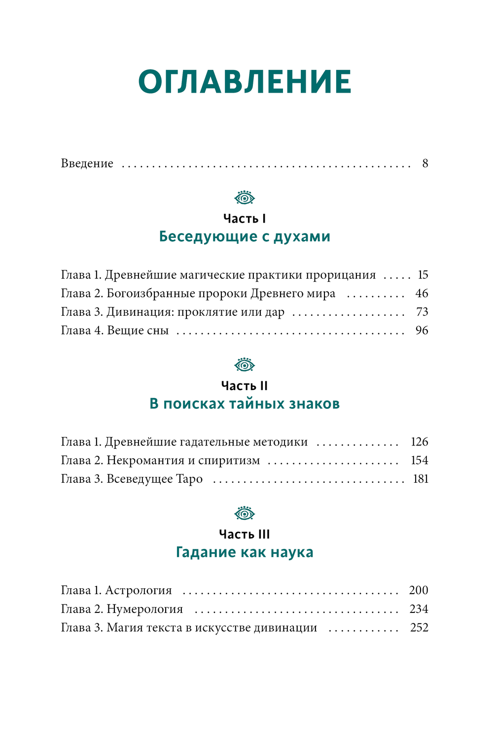 В чем различие между прорицанием, гаданиями и ворожбой? Почему предсказателей то проклинали, то превозносили? Как научные открытия порождали новые суеверия? В этой книге рассказывается о попытках человека заглянуть в будущее – от библейских пророков и древних шаманов до астрологии, нумерологии и карт Таро. Отдельный раздел посвящен русским традициям гаданий.