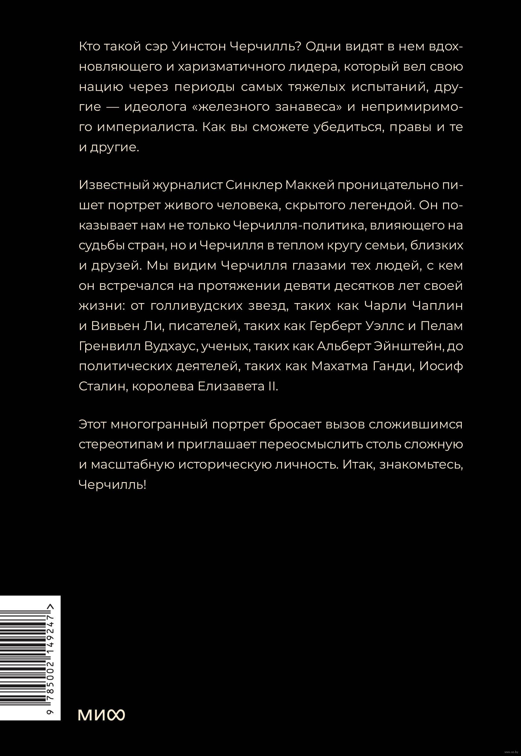 Книга предлагает уникальный взгляд на личность британского премьера Уинстона Черчилля через воспоминания людей, с которыми он сталкивался на протяжении своей жизни. Среди них – шифровальщики Блетчли-парка, голливудские звезды, такие как Чарли Чаплин, писатели Герберт Уэллс и П.Г. Вудхауз, политические лидеры, включая Махатму Ганди и Дуайта Эйзенхауэра.