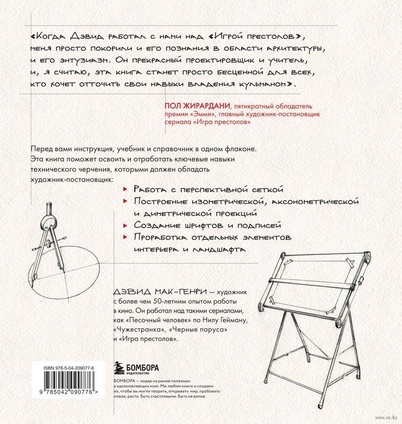 Эта книга – первое русскоязычное издание фундаментального руководства по техническому черчению от руки, разработанного специально для индустрии кино и телевидения. В эпоху цифровых технологий черчение от руки остается важнейшим навыком для художников-постановщиков, декораторов, реквизиторов и всех, кто участвует в создании визуальной составляющей фильмов и сериалов. Эта книга пошагово проведет вас через все этапы – от выбора инструментов и освоения базовых техник до создания сложных перспективных чертежей, планов этажей, разрезов и рабочих чертежей декораций.
