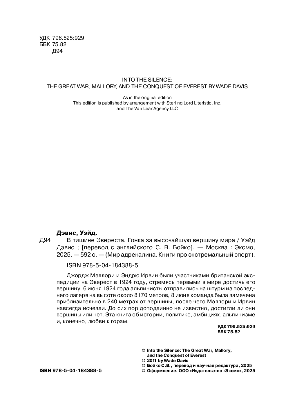 | Название в оригинале | Into the Silence: The Great War, Mallory, and the Conquest of Everest |