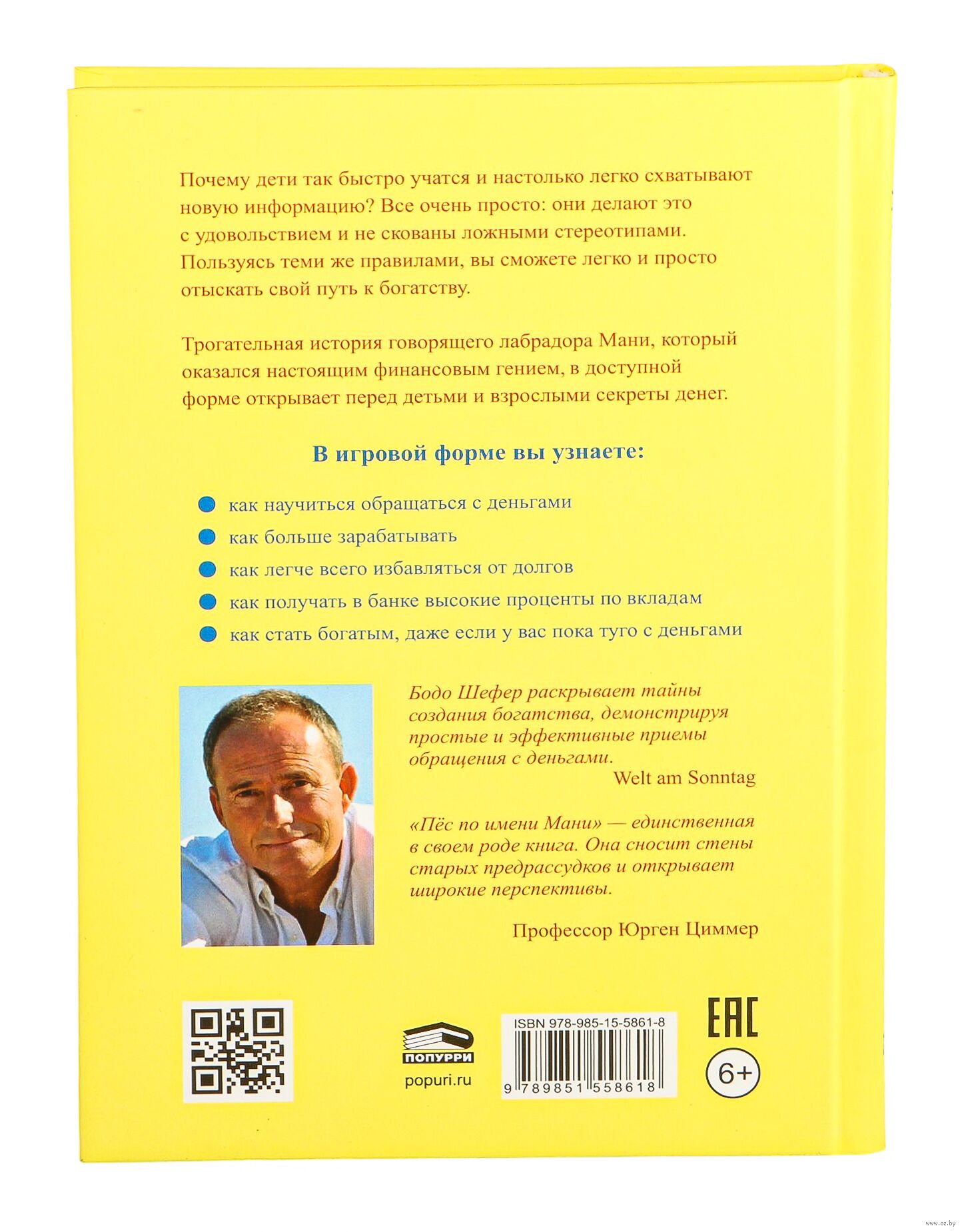 Почему дети так быстро учатся и настолько легко схватывают новую информацию? Все очень просто: они делают это с удовольствием и не скованы ложными стереотипами. Пользуясь теми же правилами, вы сможете легко и просто отыскать свой путь к богатству. Трогательная история говорящего лабрадора Мани, который оказался настоящим финансовым гением, в доступной форме открывает перед детьми и взрослыми секреты денег.