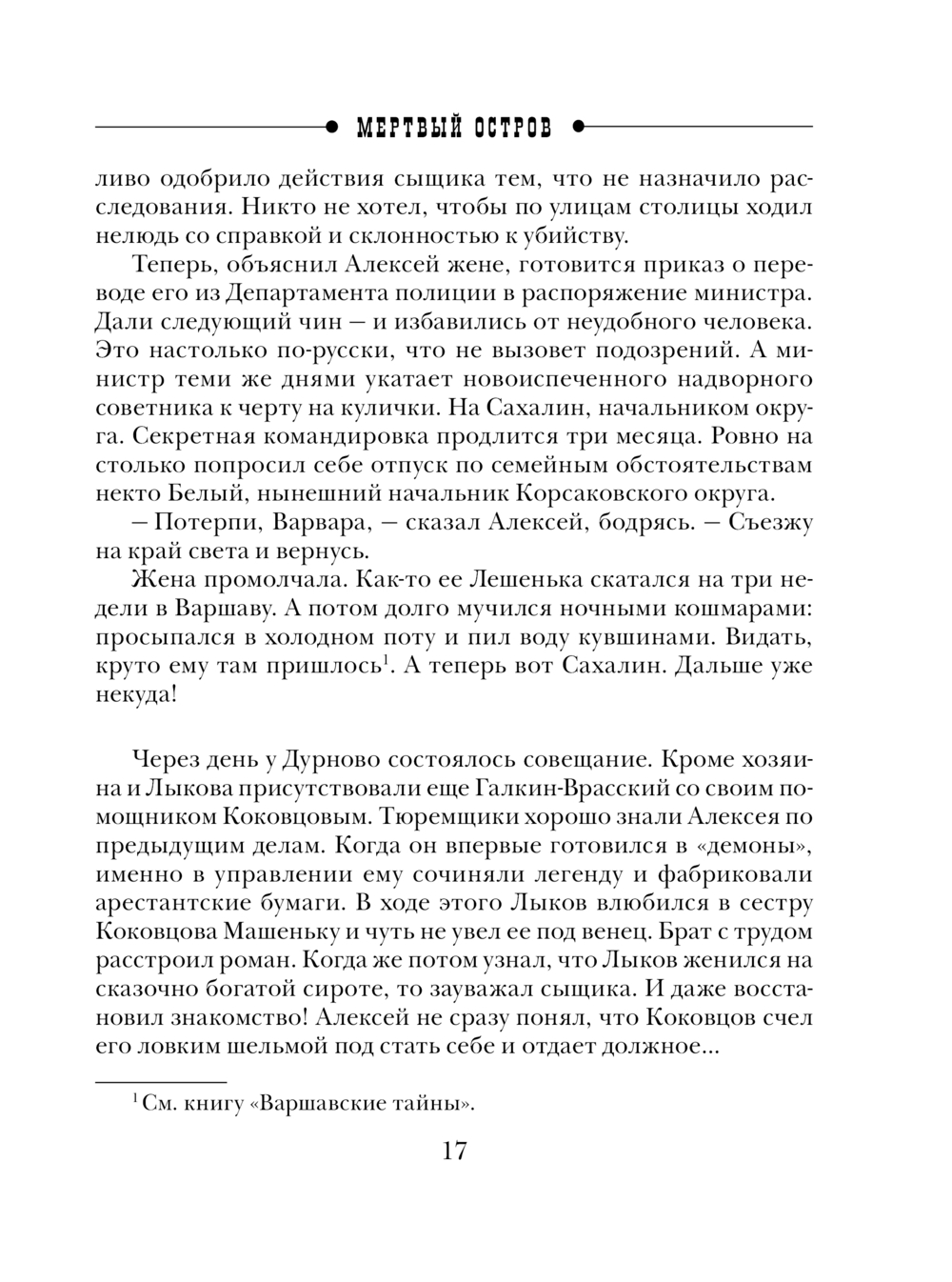 Весна 1889 года. После смерти своего учителя Павла Афанасьевича Благово Алексей Лыков отправляется в командировку. В Японии найдены трупы трех беглых русских каторжников, которые по документам по-прежнему числятся заключенными сахалинских тюрем. Есть подозрения, что их побег был организован японской мафией – якудза. Чтобы найти ответы на все вопросы, Лыков отправляется на Сахалин с секретным заданием...