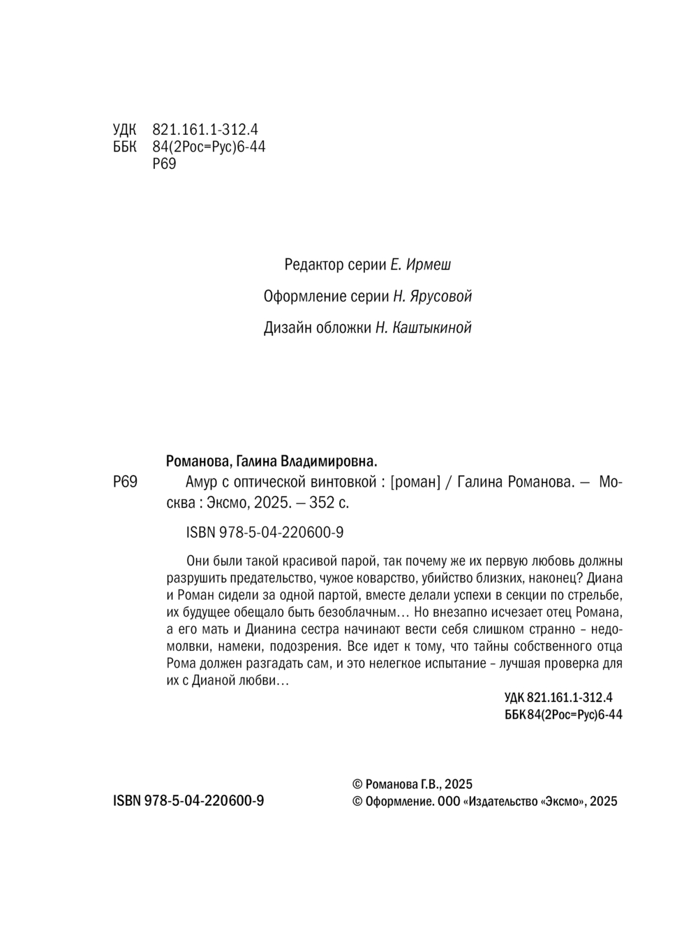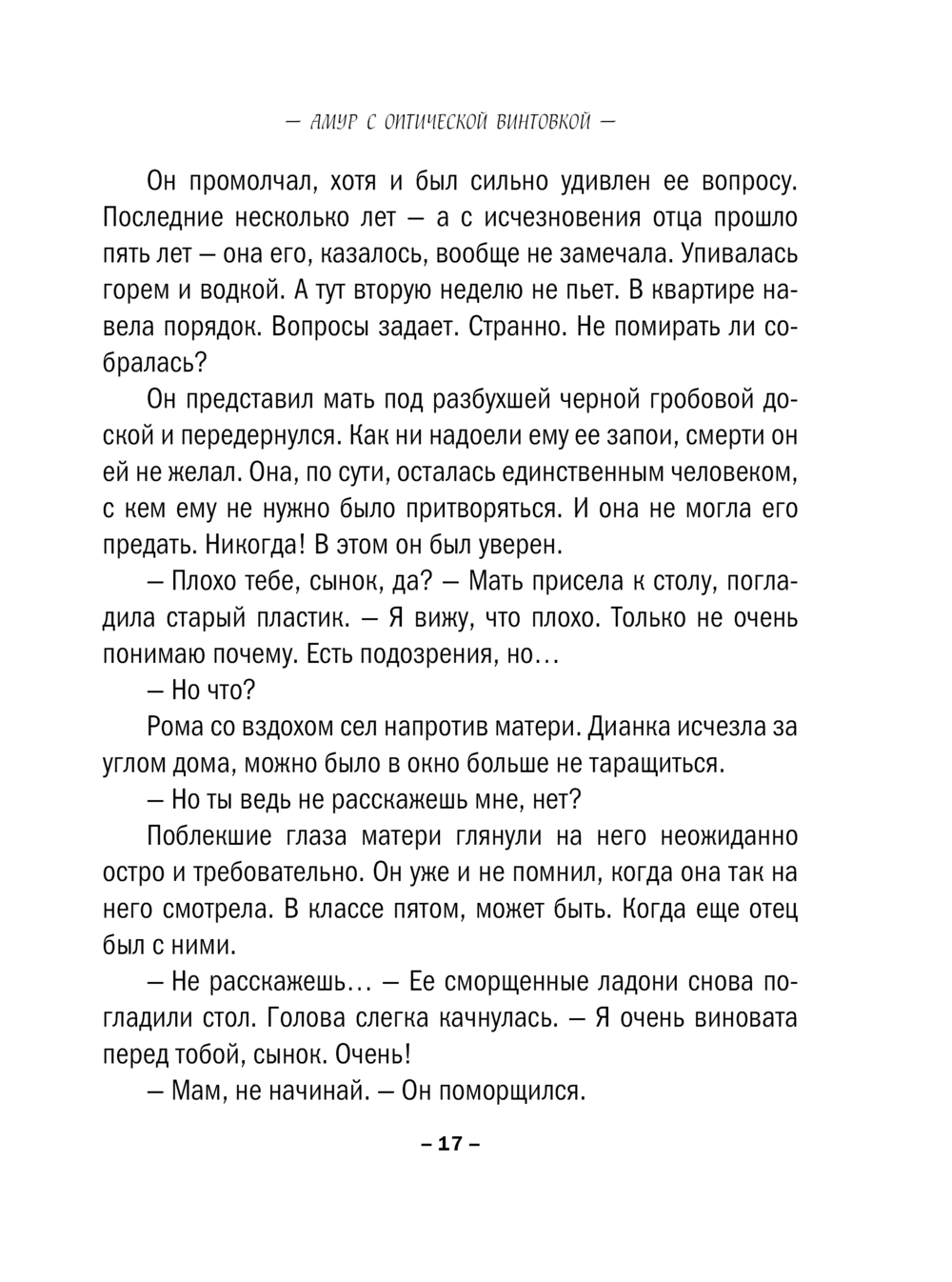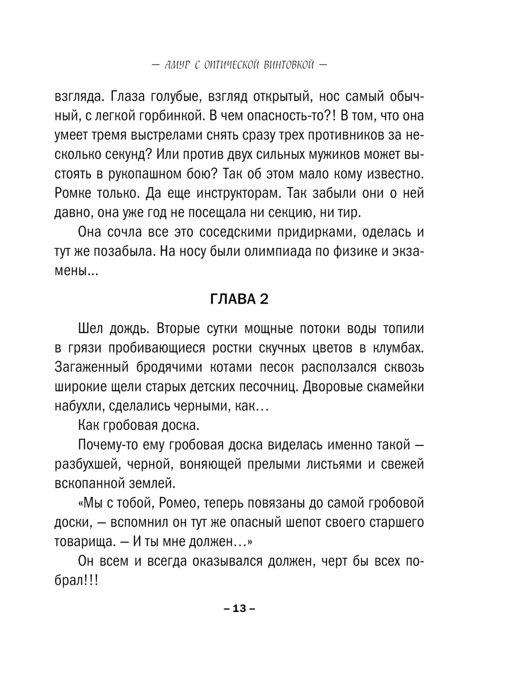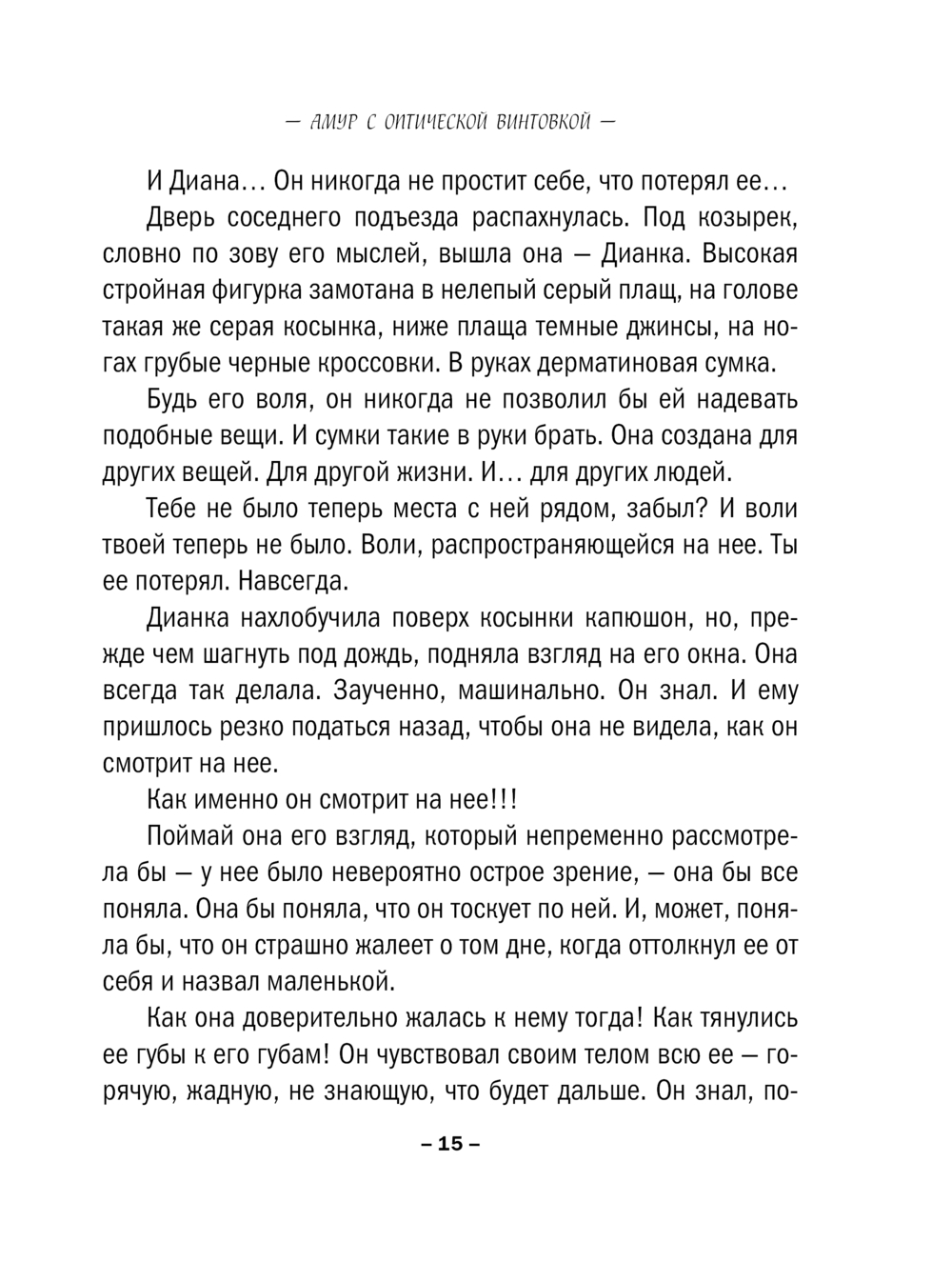 Они были такой красивой парой, так почему же их первую любовь должны разрушить предательство, чужое коварство, убийство близких наконец? Диана и Роман сидели за одной партой, вместе делали успехи в секции по стрельбе, их будущее обещало быть безоблачным… Но внезапно исчезает отец Романа, а его мать и Дианина сестра начинают вести себя слишком странно – недомолвки, намеки, подозрения. Все идет к тому, что тайны собственного отца Рома должен разгадать сам, и это нелегкое испытание – лучшая проверка для их с Дианой любви…