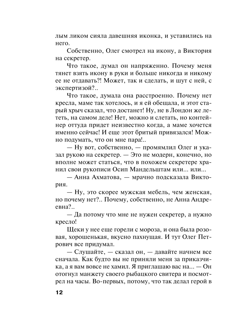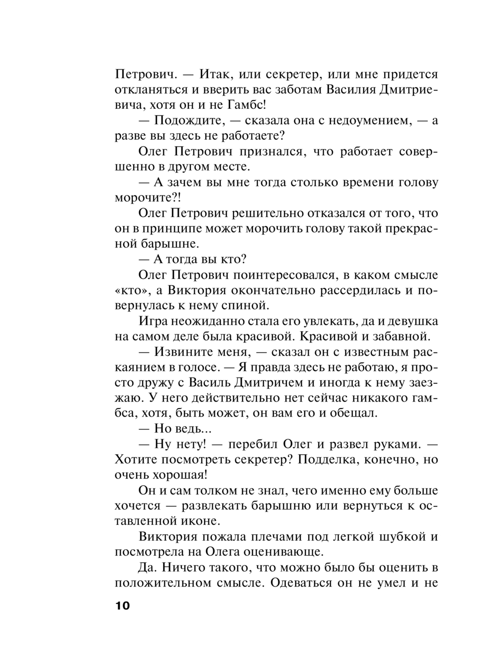Вот сейчас, в этот самый миг, в это самое мгновенье, когда он должен принять судьбоносное решение, Олег Петрович испугался. Испугался и подумал: зачем ему это нужно?! Эта женщина, эта новая жизнь?! Но события последних дней все перевернули, все поставили с ног на голову… Икона с ликом Преподобного Серафима Саровского, которая словно сама попала к нему в руки, кража из музея уникальной демидовской коллекции, убийство его старого приятеля антиквара Василия Дмитриевича… Ясно как божий день – все это было предопределено. Предопределено кем-то свыше. Кем-то, кто послал ему на жизненном пути эту женщину…