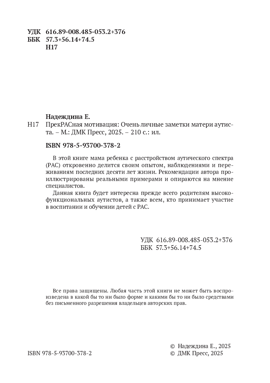 Издание будет полезно прежде всего родителям высокофункциональных аутистов, а также всем, кто принимает участие в воспитании и обучении детей с РАС.