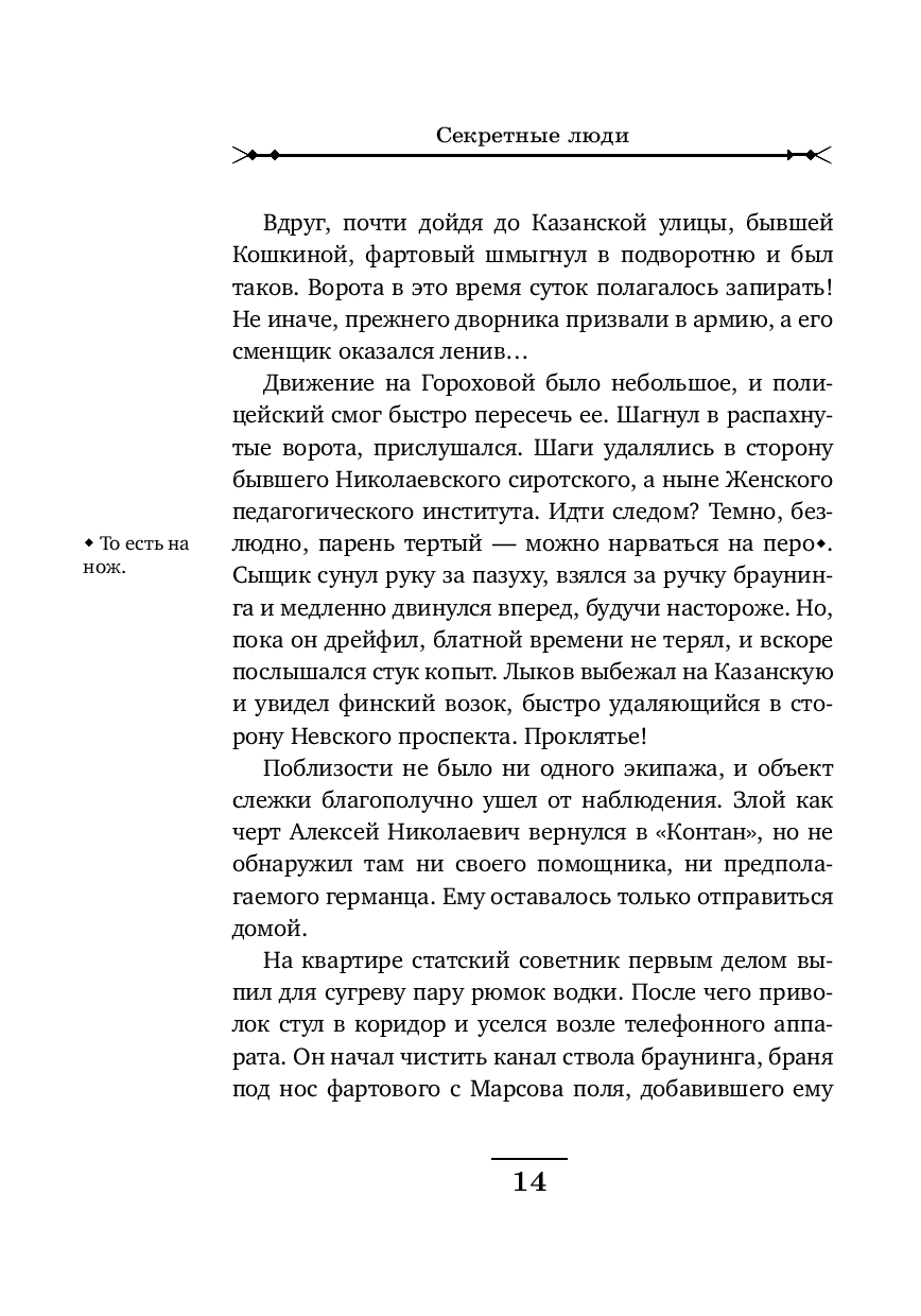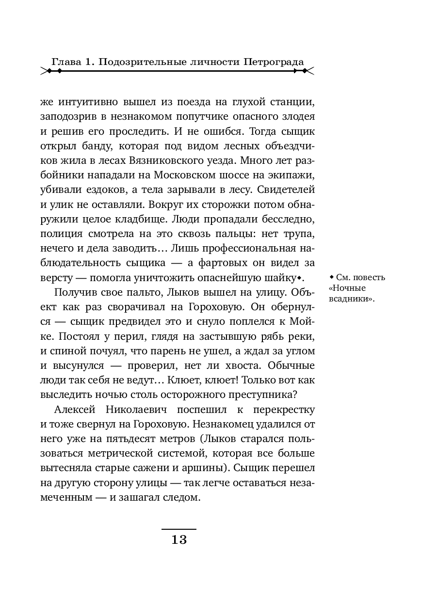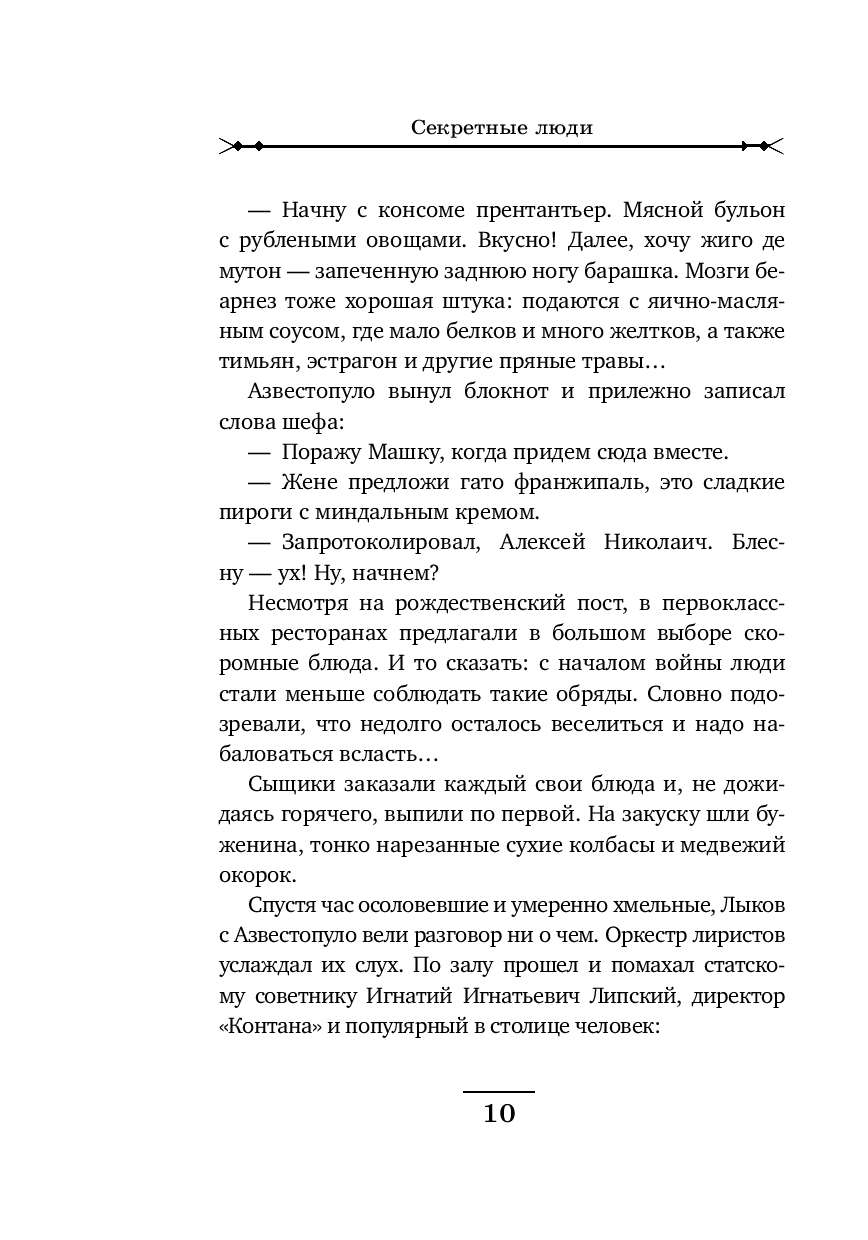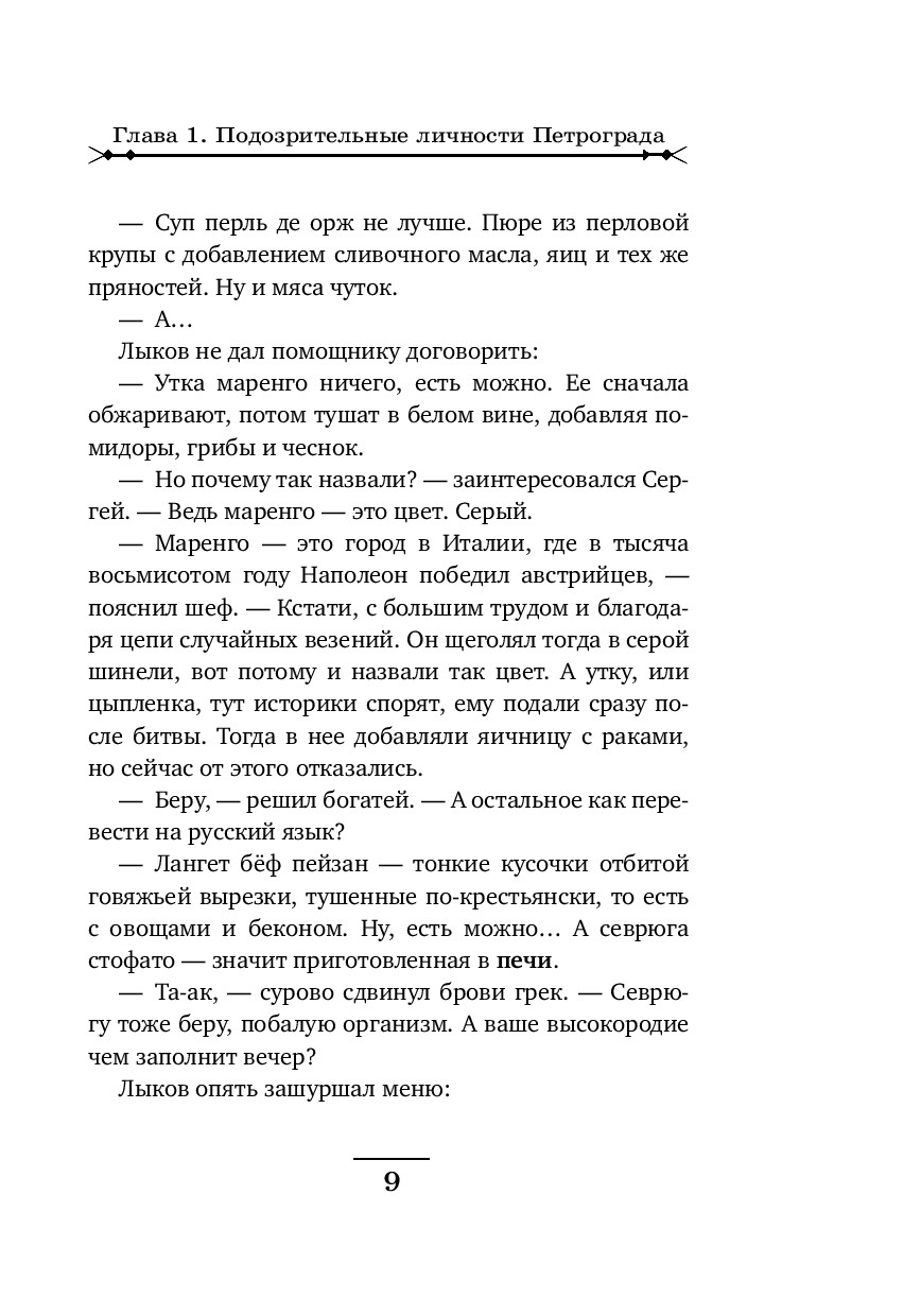 Рождественский Петроград. За роскошным ужином в модном ресторане сыщики Лыков и Азвестопуло обращают внимание на двух подозрительных типов, сидящих неподалеку. Один из них – молодой, по виду фартовый с явно уголовными манерами. Второй бритый, щеки аж лоснятся – без сомнения немец. Сыщиков хоть и развезло маленько, но все же они решают проследить за подозрительными субъектами.
