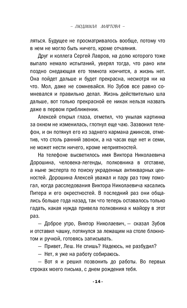 Обычное питерское утро никаких сюрпризов не обещало. Но только не для охранника Ивана Базыкина, который на обходе перед сдачей смены обнаружил труп. И не для майора Алексея Зубова, которого знакомый попросил проверить странное объявление о продаже на маркетплейсе картины Казимира Малевича… Мира Борисова случайно оказалась в квартире старого друга семьи. Он бесследно исчез, а потом был найден убитым на даче своего бывшего ученика. И это только начало цепочки странных происшествий, которые придется расследовать майору Зубову с помощью Миры…