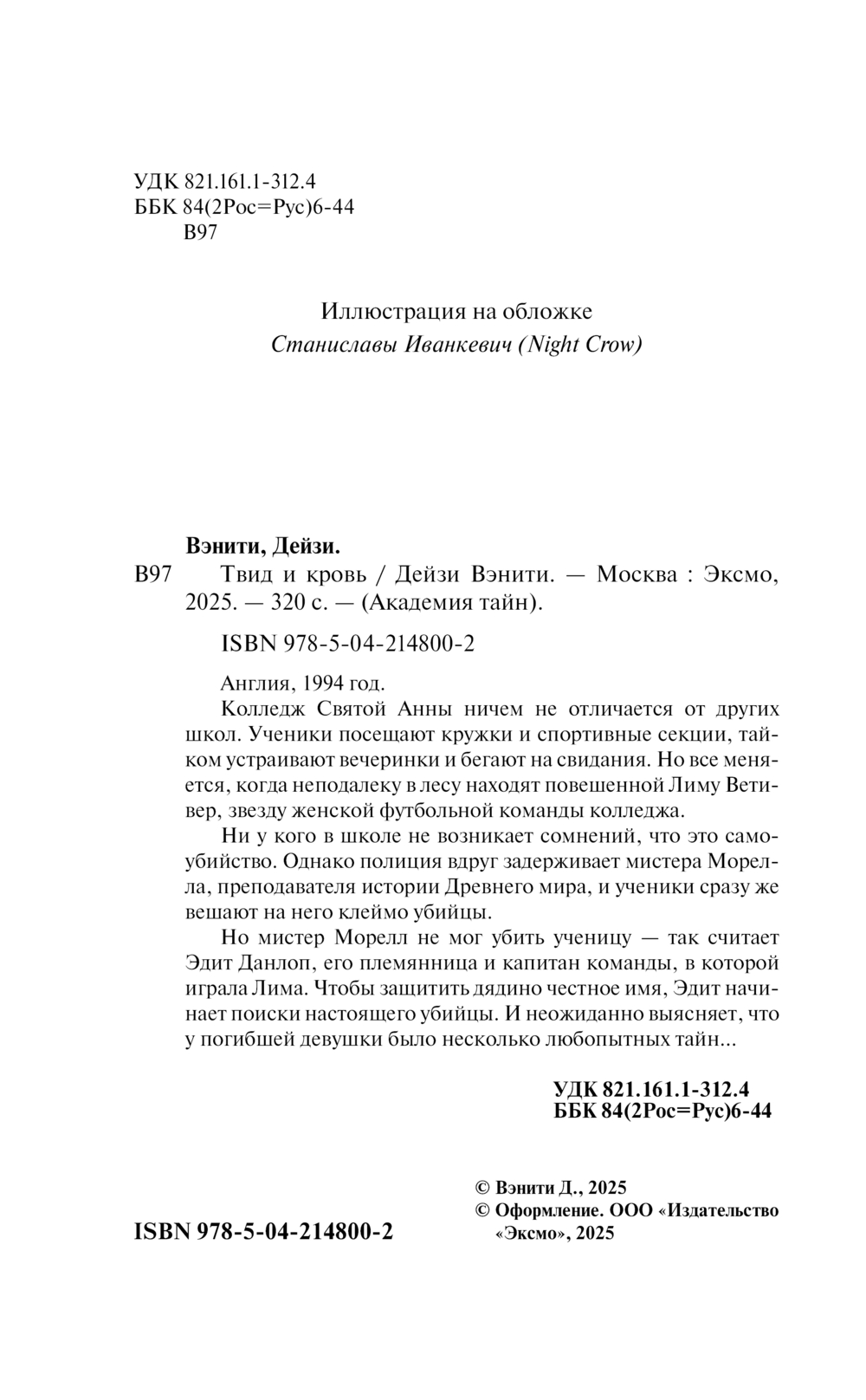 | Изготовитель | ООО «Издательство «Эксмо». РФ, г. Москва, ул. Клары Цеткин, 18, корп. 5 |