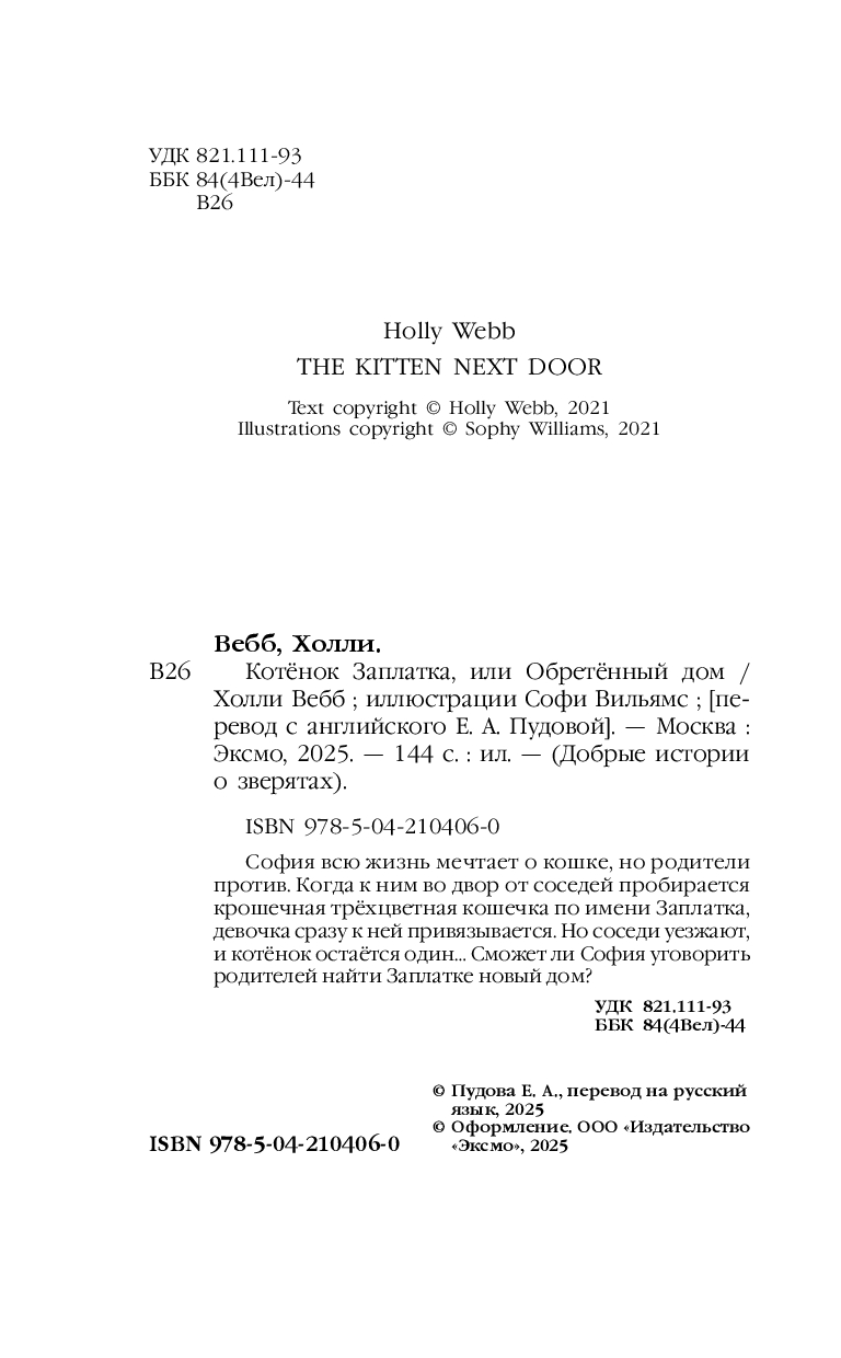 | Название в оригинале | The Kitten Next Door by Holly Webb |