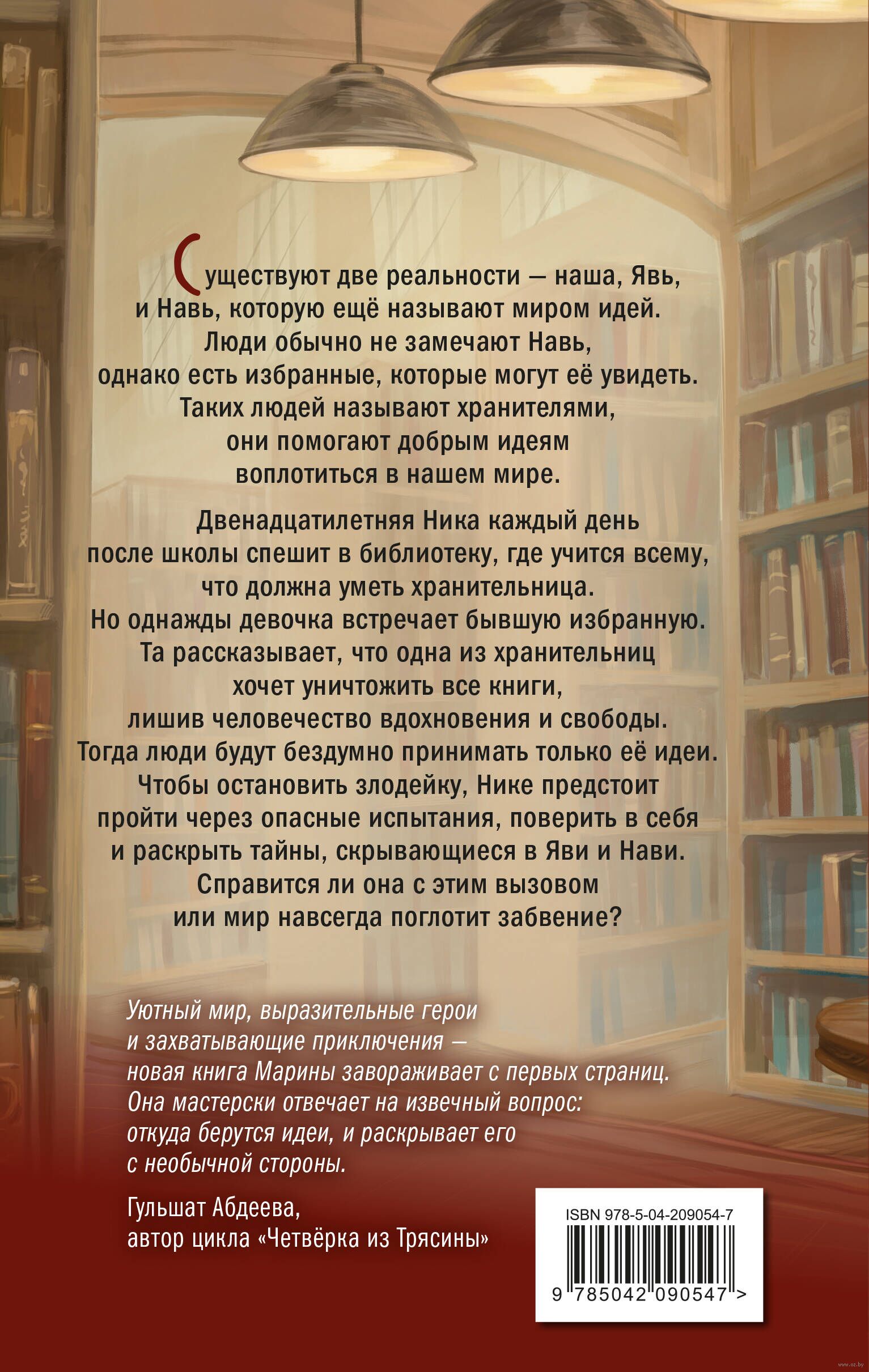 Ловить вспышки озарений, подманивать идеи, шутить с баловством – теперь жизнь Ники похожа на увлекательный фэнтези-роман, а не на скучную обыденность! Каждый день после школы она спешит в библиотеку, чтобы научиться быть хранительницей – той, кто помогает идеям из мира фантазии воплотиться в нашем мире и тем самым сделать его лучше. Но есть и те, кого такое положение вещей не устраивает. И для них, желающих уничтожить фантазию, неопытная ученица – самый удобный способ добраться до тайн хранителей. Сможет ли Ника справиться с таким вызовом?