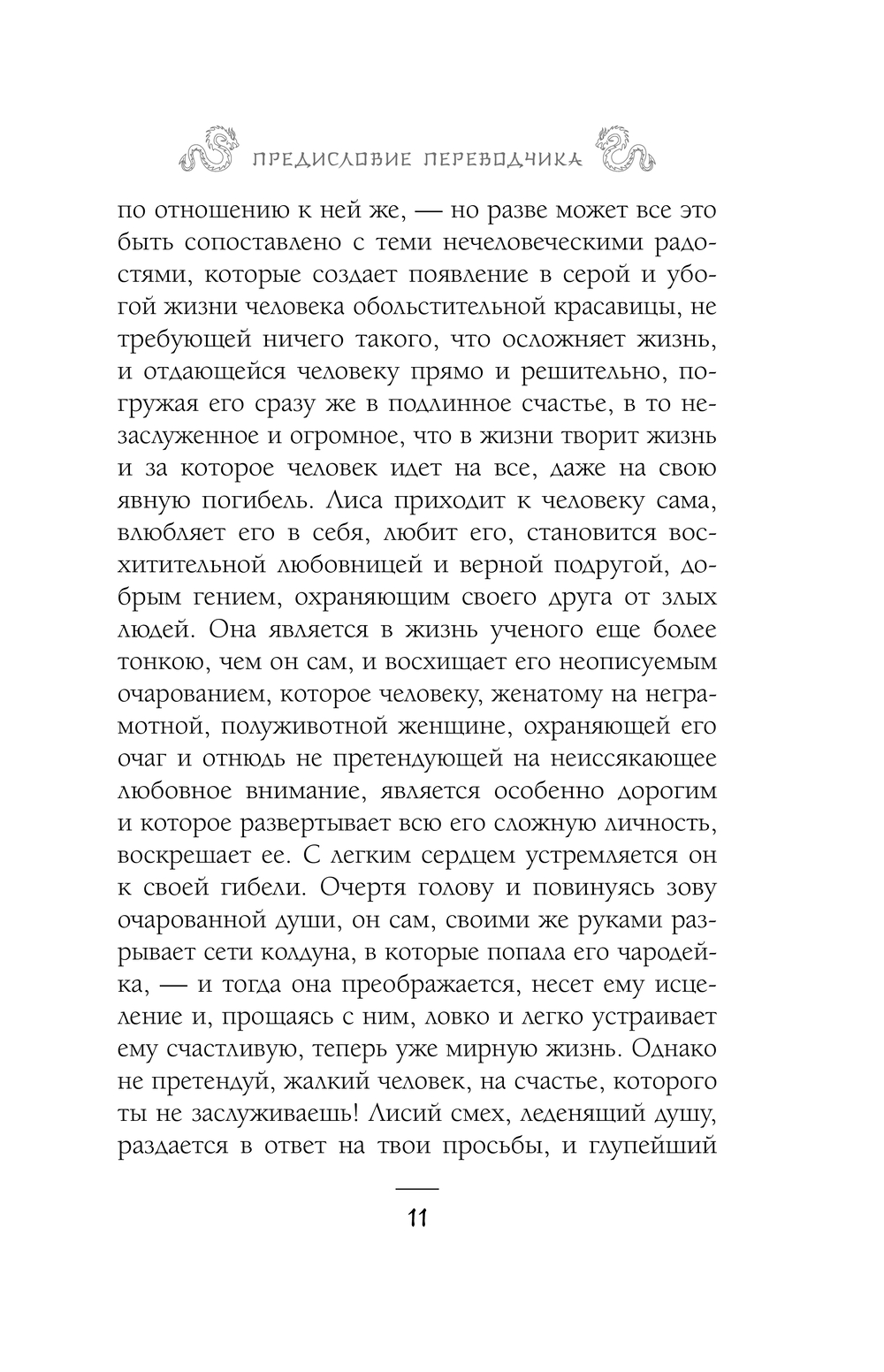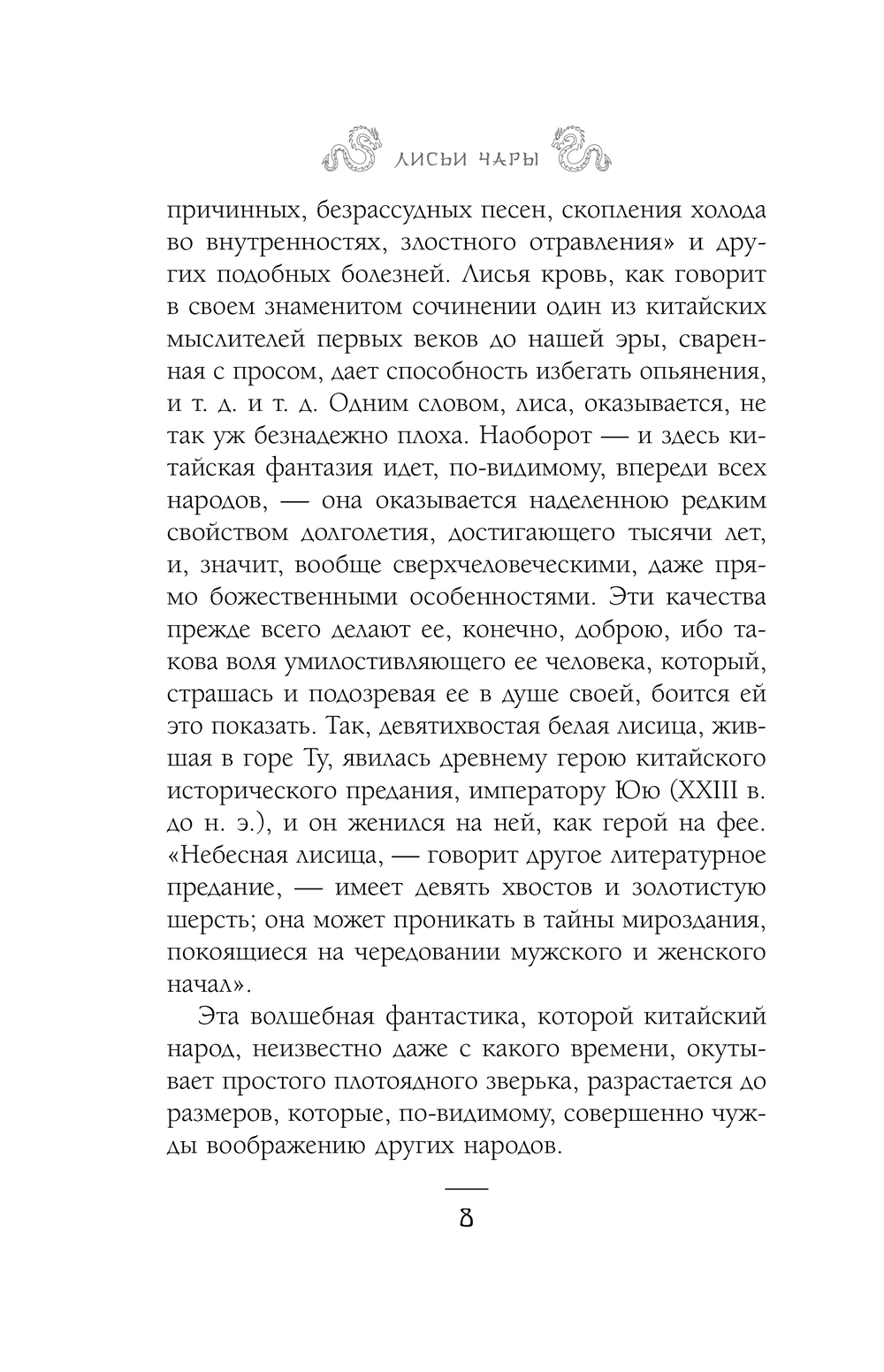 "Небесная лисица имеет девять хвостов и золотистую шерсть; она может проникать в тайны мироздания, покоящиеся на чередовании мужского и женского начал".