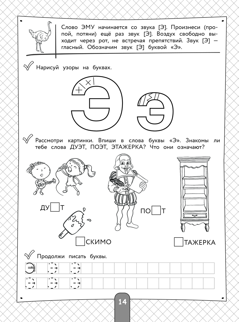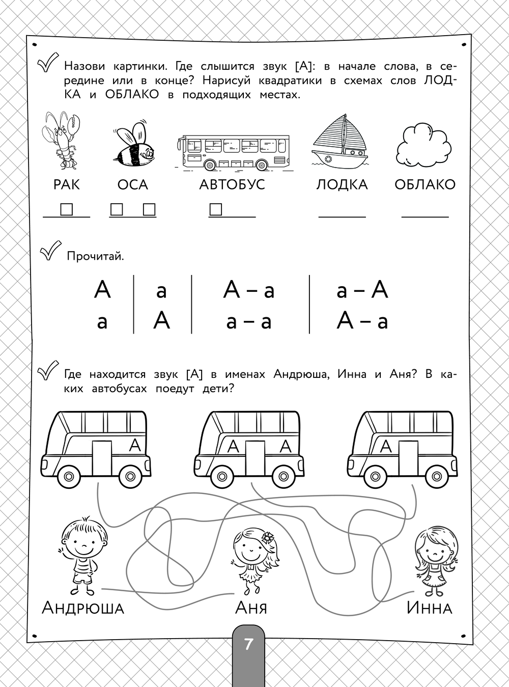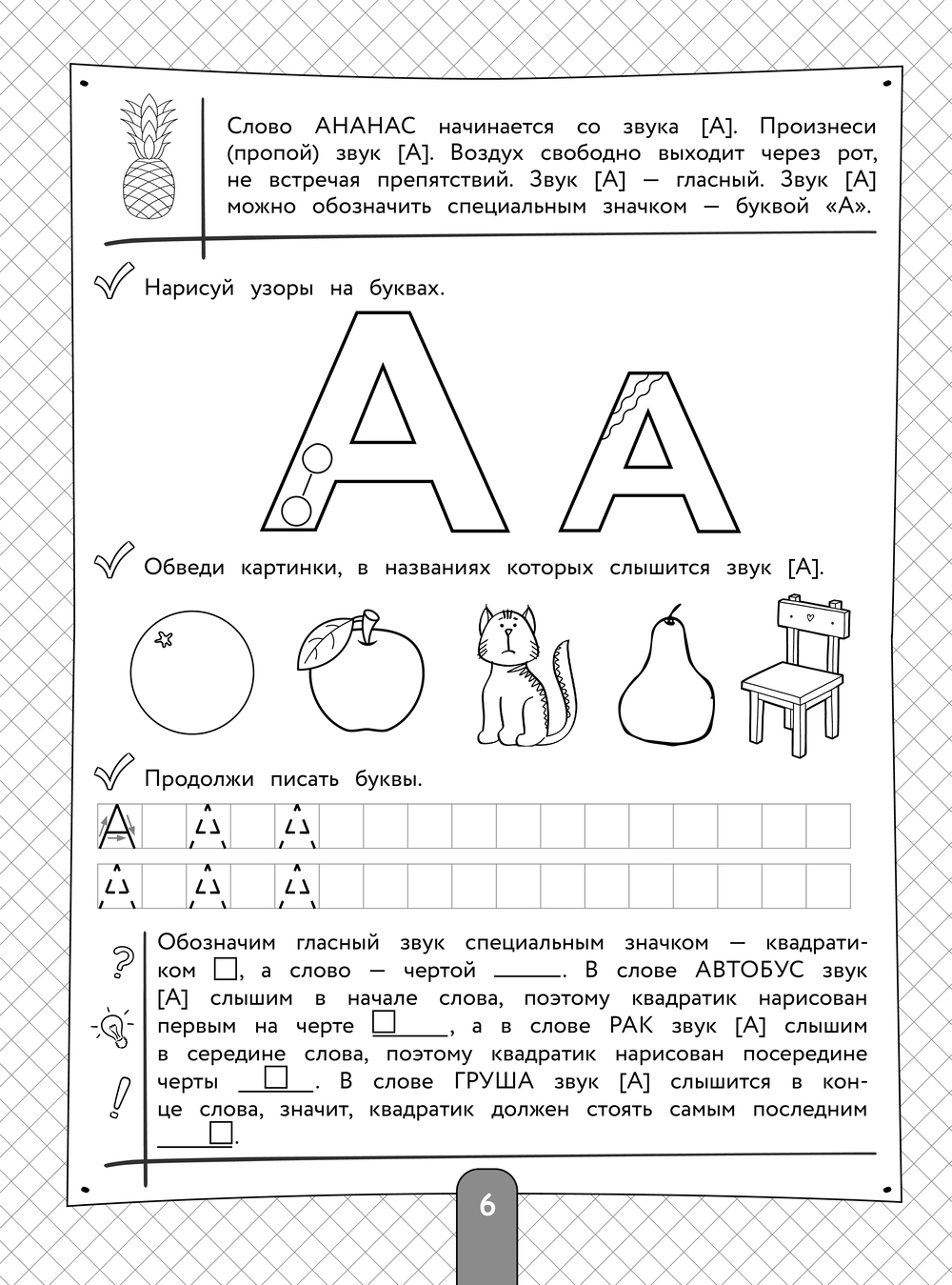 Основная задача пособия, соответствующего ФГОС, качественная подготовка ребенка к школе. Книга состоит из более 500 упражнений и включает в себя основные темы, которые нужно усвоить будущему первокласснику: отработка навыка чтения от слогов до целых предложений и небольших текстов, развитие мелкой моторики, написание букв и цифр, развитие навыков счёта и логического мышления, решение задач. Занимательные чёрно-белые картинки способствуют лучшему восприятию изучаемого материала, привнеся игровые элементы в процесс обучения.