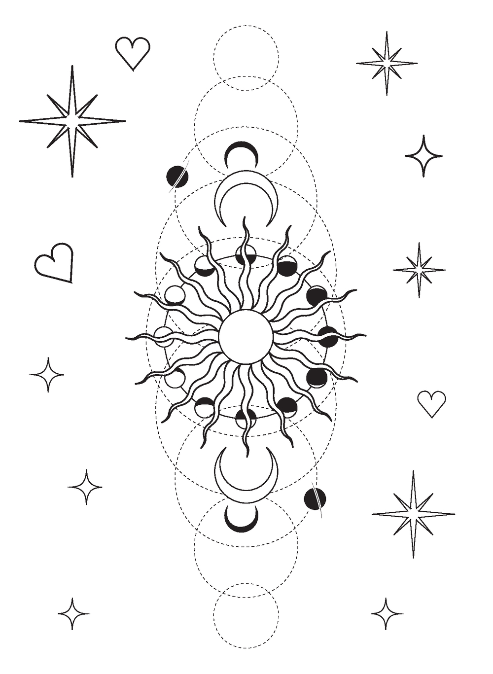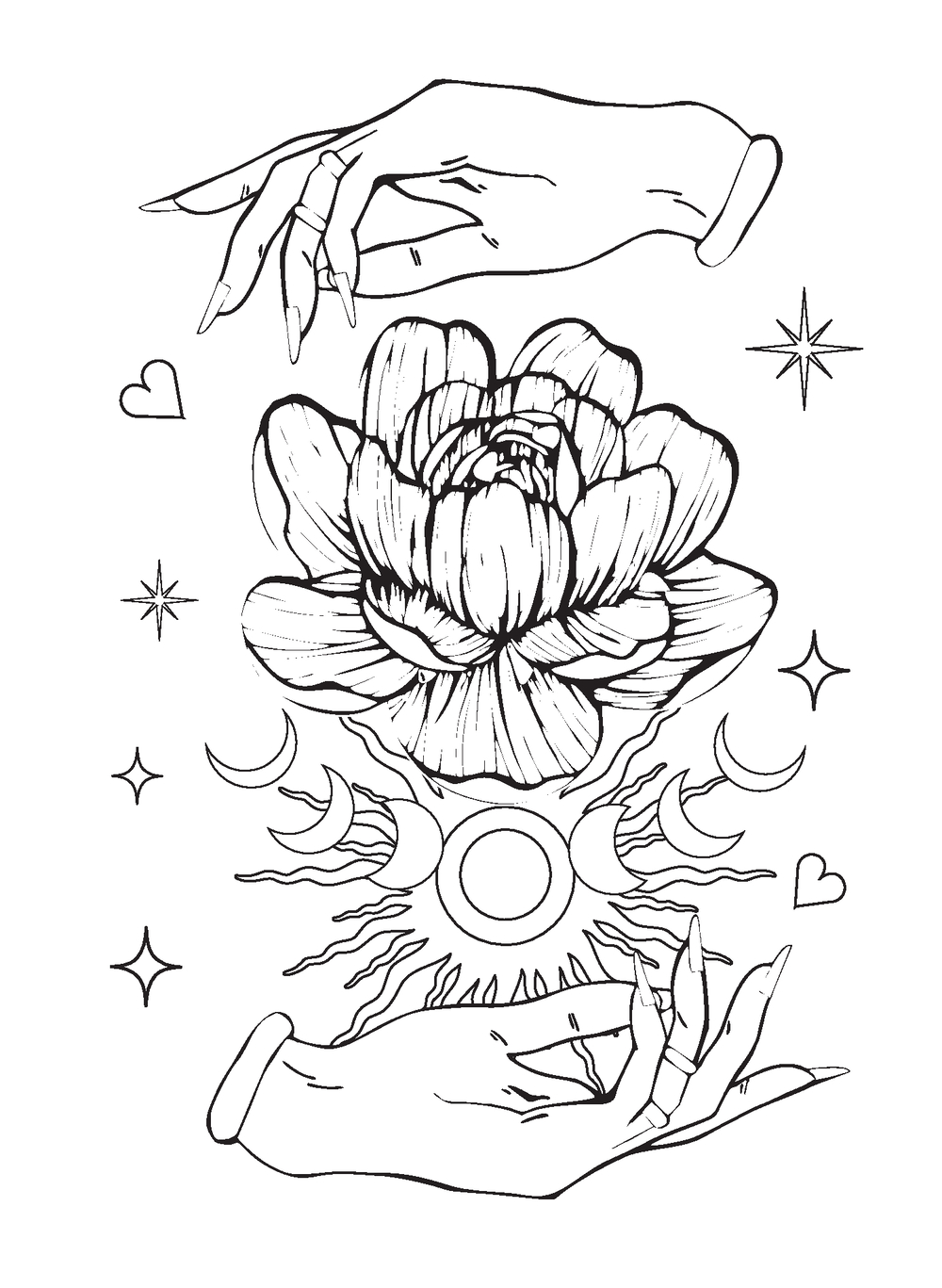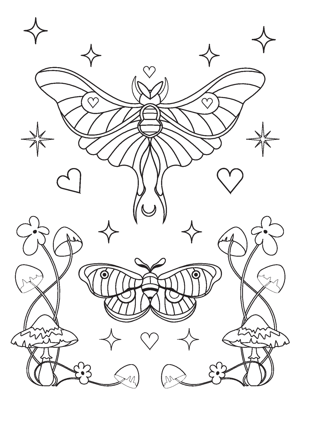 Раскрасьте страницы постербука по своему вкусу и украсьте ими любимый уголок или рабочее место, чтобы наполнить его колдовством и загадочным светом Луны.