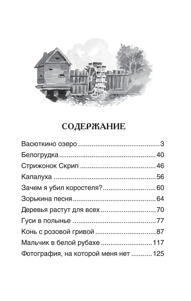 В сборник вошли рассказы В. П. Астафьева "Васюткино озеро", "Белогрудка", "Стрижонок Скрип", "Зорькина песня", "Гуси в полынье", "Конь с розовой гривой", "Фотография, на которой меня нет" и другие. Читателю предстоит погрузиться в полную трудностей повседневную жизнь послевоенной сибирской деревни, увидеть ее глазами ребенка главного героя этих рассказов.