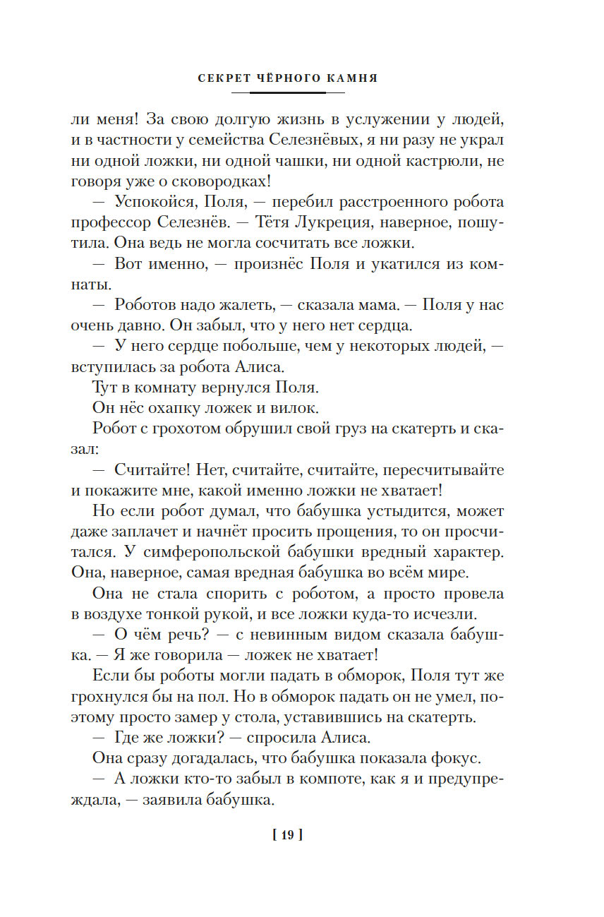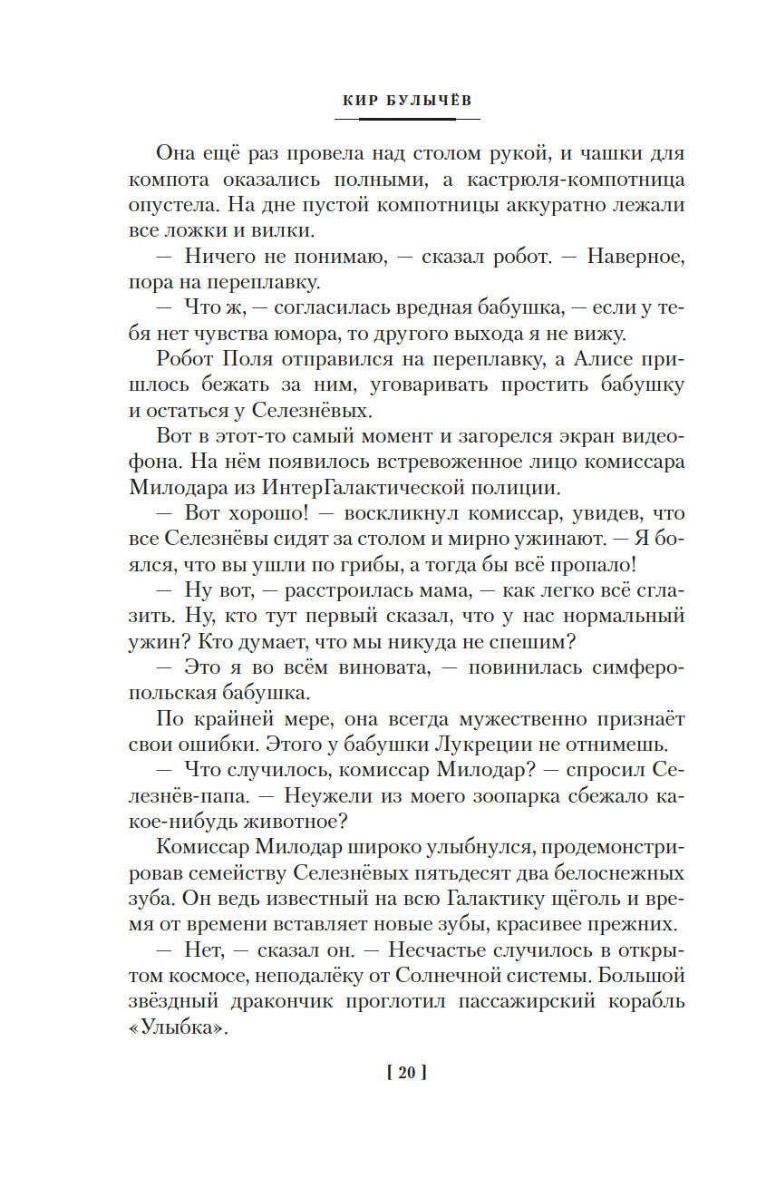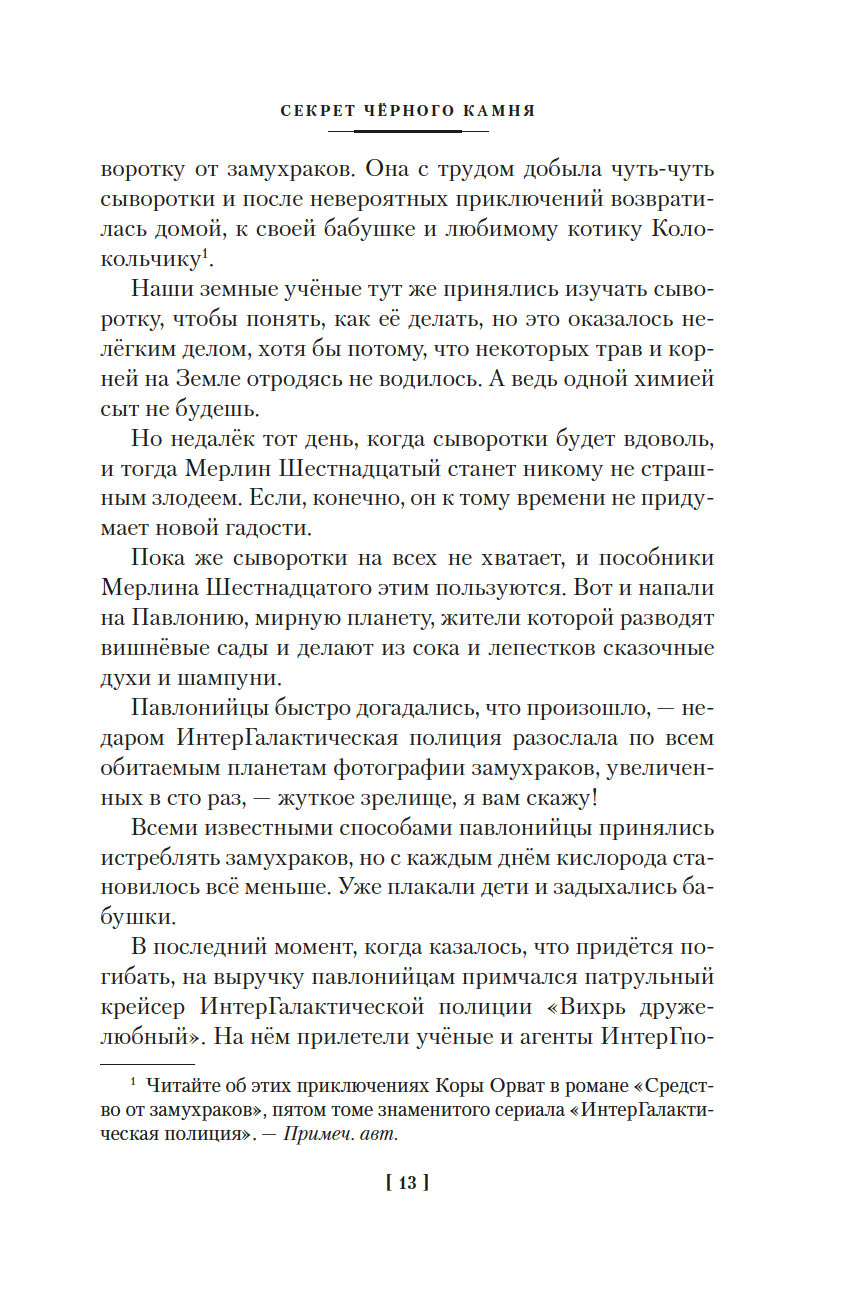 Наверное, во всей Вселенной не существует загадок, которые не могла бы разгадать Алиса Селезнёва. Правда, над секретом чёрного камня и тайной пропажи детей девочке всё же пришлось изрядно поломать голову. А потом ещё и вампир Полумракс вздумал захватить мир, подменив людей, животных и даже роботов оборотнями из эпохи легенд. Но разве трудности когда-либо пугали Алису? Ведь жизнь куда интереснее, когда она полна невероятных приключений!