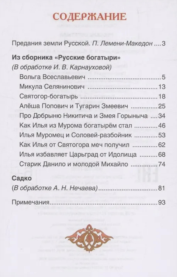 Былины – это народные сказания о славных подвигах богатырей Древней Руси. В сборник вошли былины о Вольге Всеславьевиче, Микуле Селяниновиче, Святогоре-богатыре, Алеше Поповиче, Добрыне Никитиче, Илье Муромце, Садко и др. в пересказе известных русских фольклористов И. В. Карнауховой и А. Н. Нечаева.
