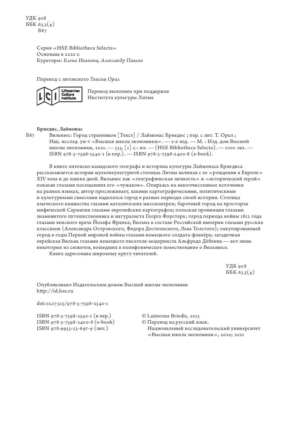 В книге литовско-канадского географа и историка культуры Лаймонаса Бриедиса рассказывается история мультикультурной столицы Литвы начиная с ее "рождения в Европе" XIV века и до наших дней.