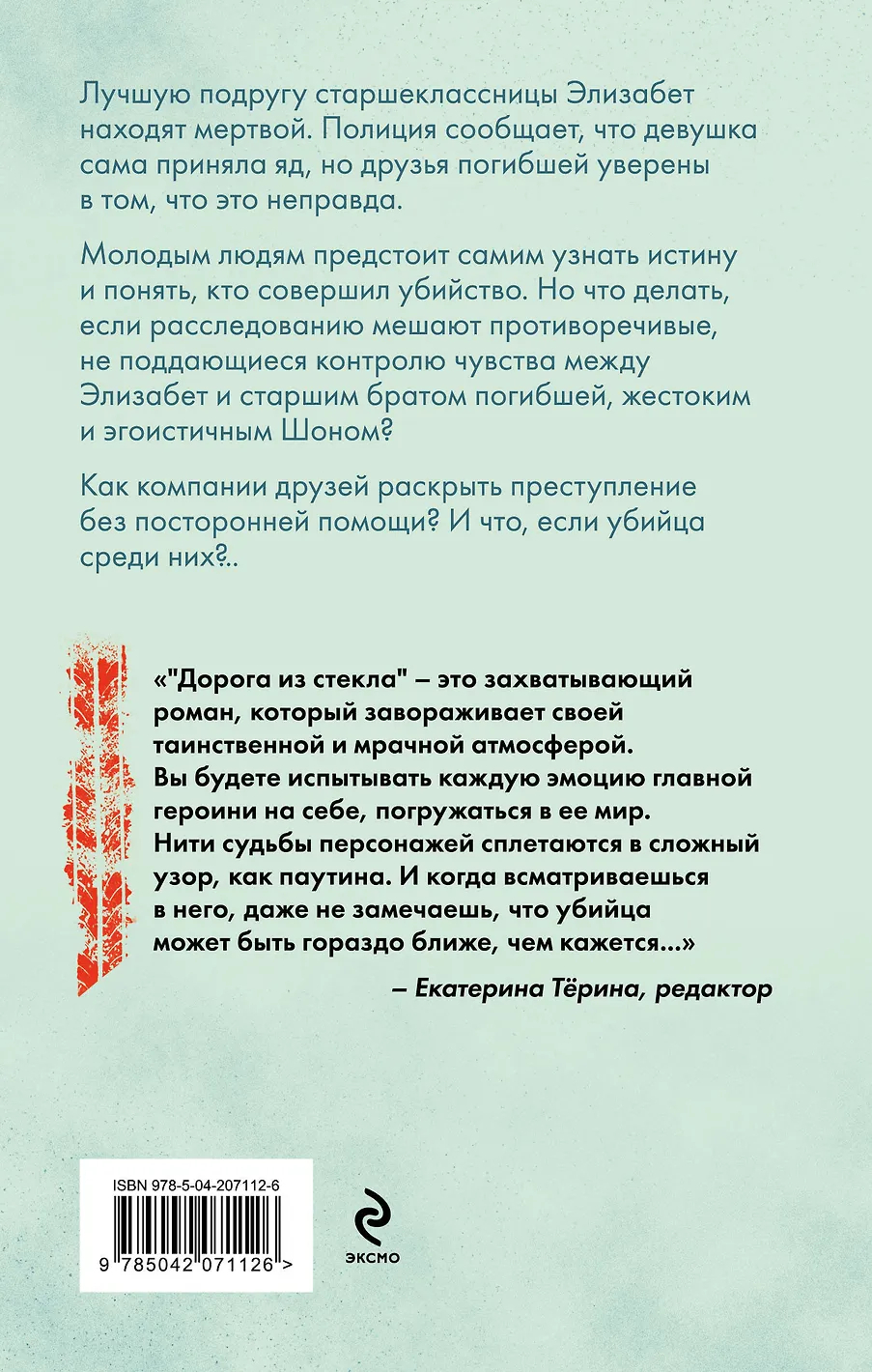 "Дорога из стекла" – более тонкий, почти прозрачный по стилю роман, где за холодными стенами таится не только убийца, но и незаживающая боль. Герои слишком близки друг к другу, чтобы остаться невовлечёнными.
