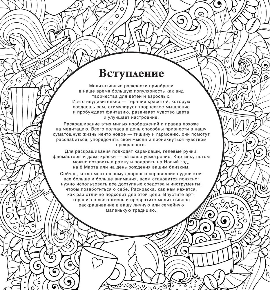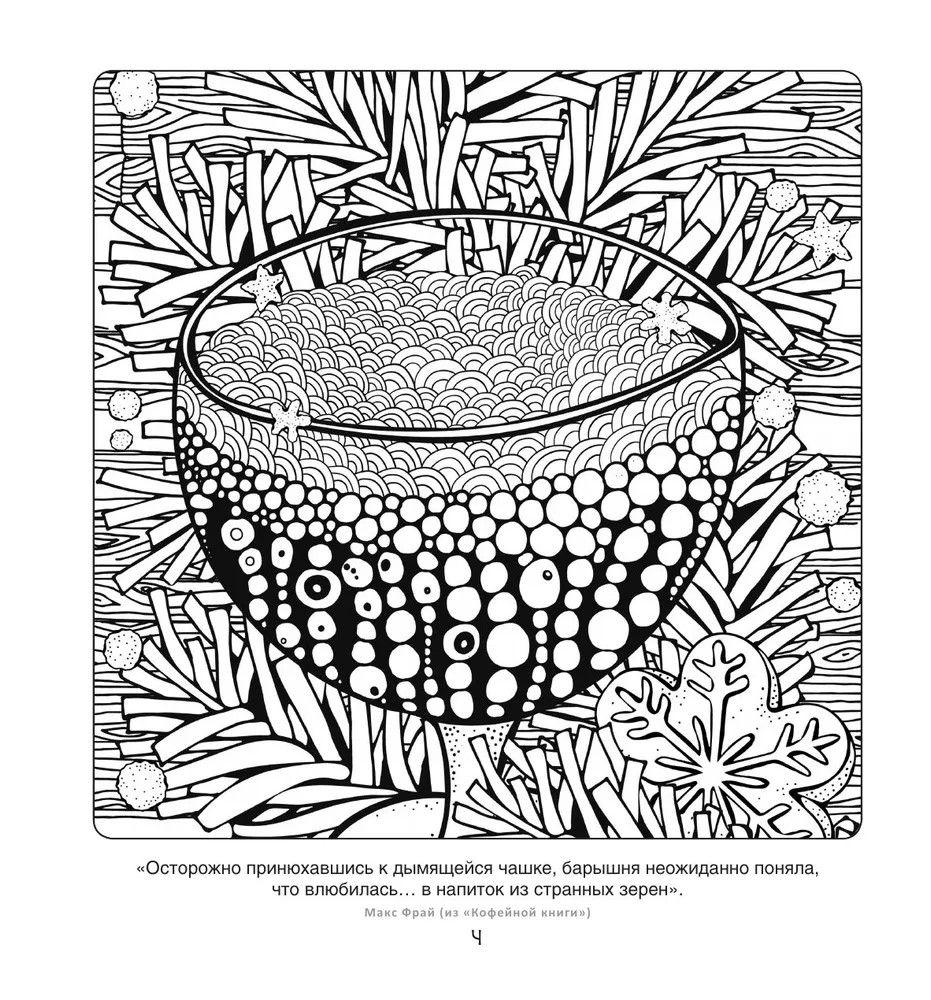 Если вы тоже считаете, что ароматный кофе способен согреть весь мир, и любите устраивать себе перерывы от всего на свете в компании с этим напитком, то эта раскраска вам точно понравится. Самые разные рисунки на кофейную тему – отличный вариант для арт-терапии и творческого свидания с самим собой.