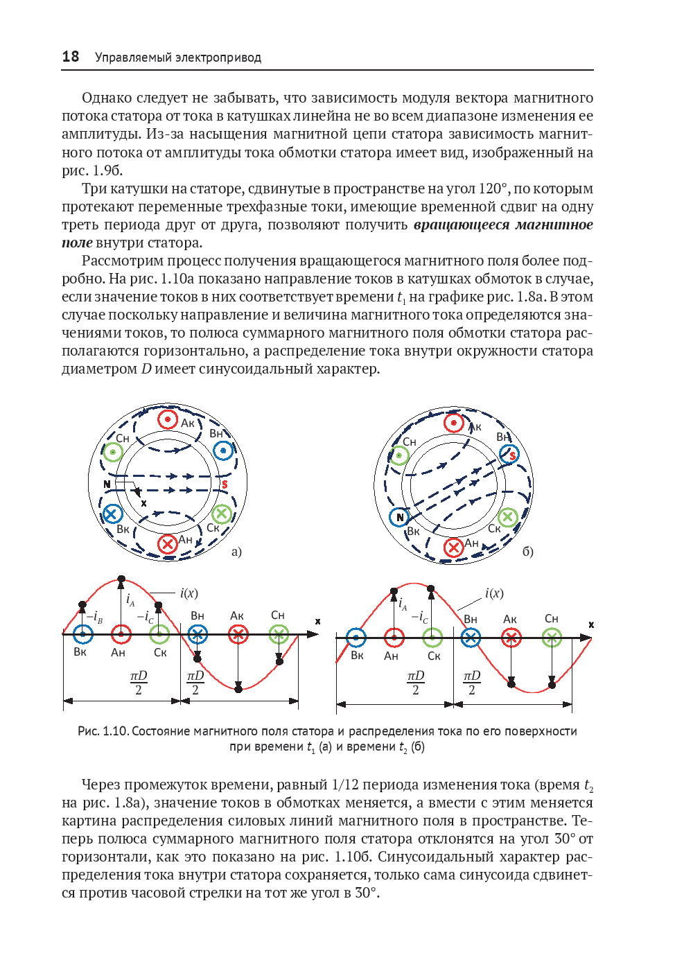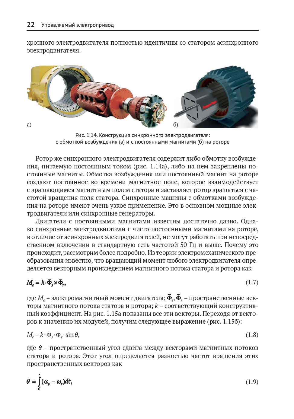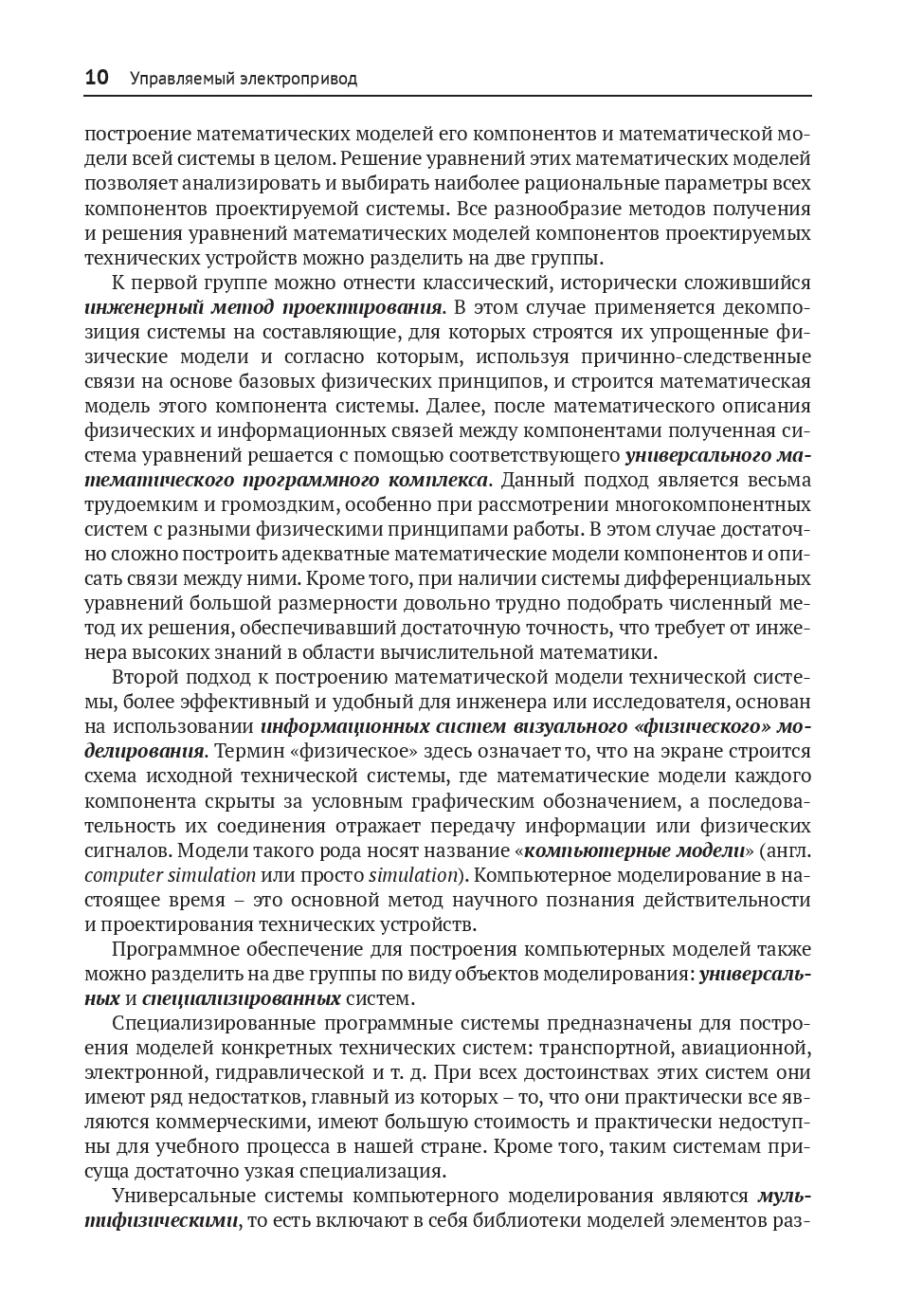 На уровне базового инженерного образования приведены общие сведения о компонентах современного управляемого электропривода: электродвигателей переменного тока, преобразователей частоты, принципах их действия и алгоритмах управления. Рассмотрены общие вопросы построения структуры автоматизированного электропривода и алгоритмы управления асинхронными электродвигателями и синхронными электродвигателями с постоянными магнитами, а также методами создания математических и компьютерных моделей их систем управления.