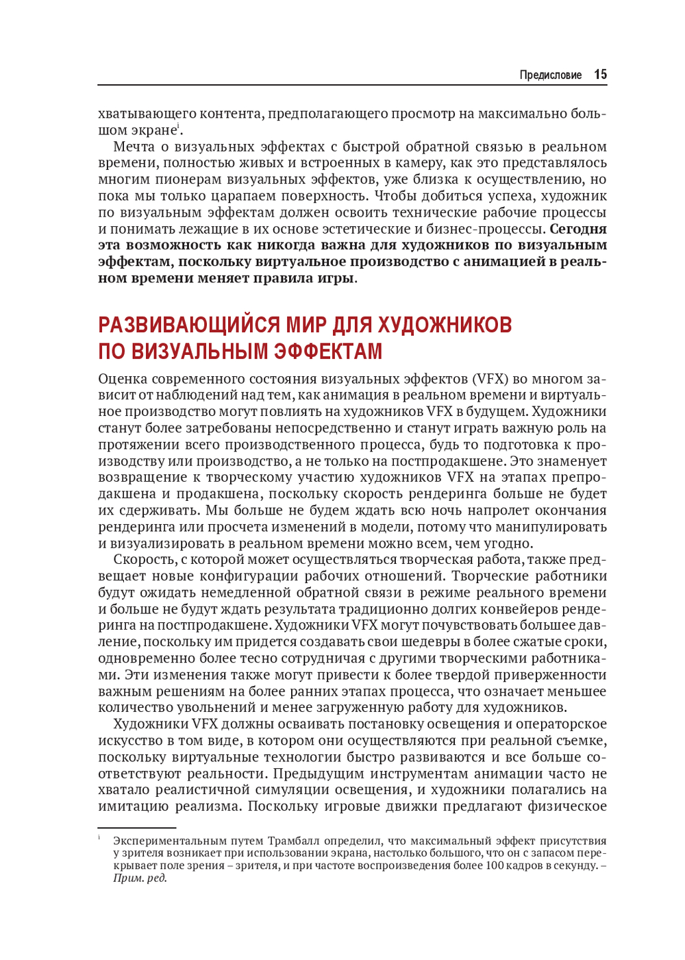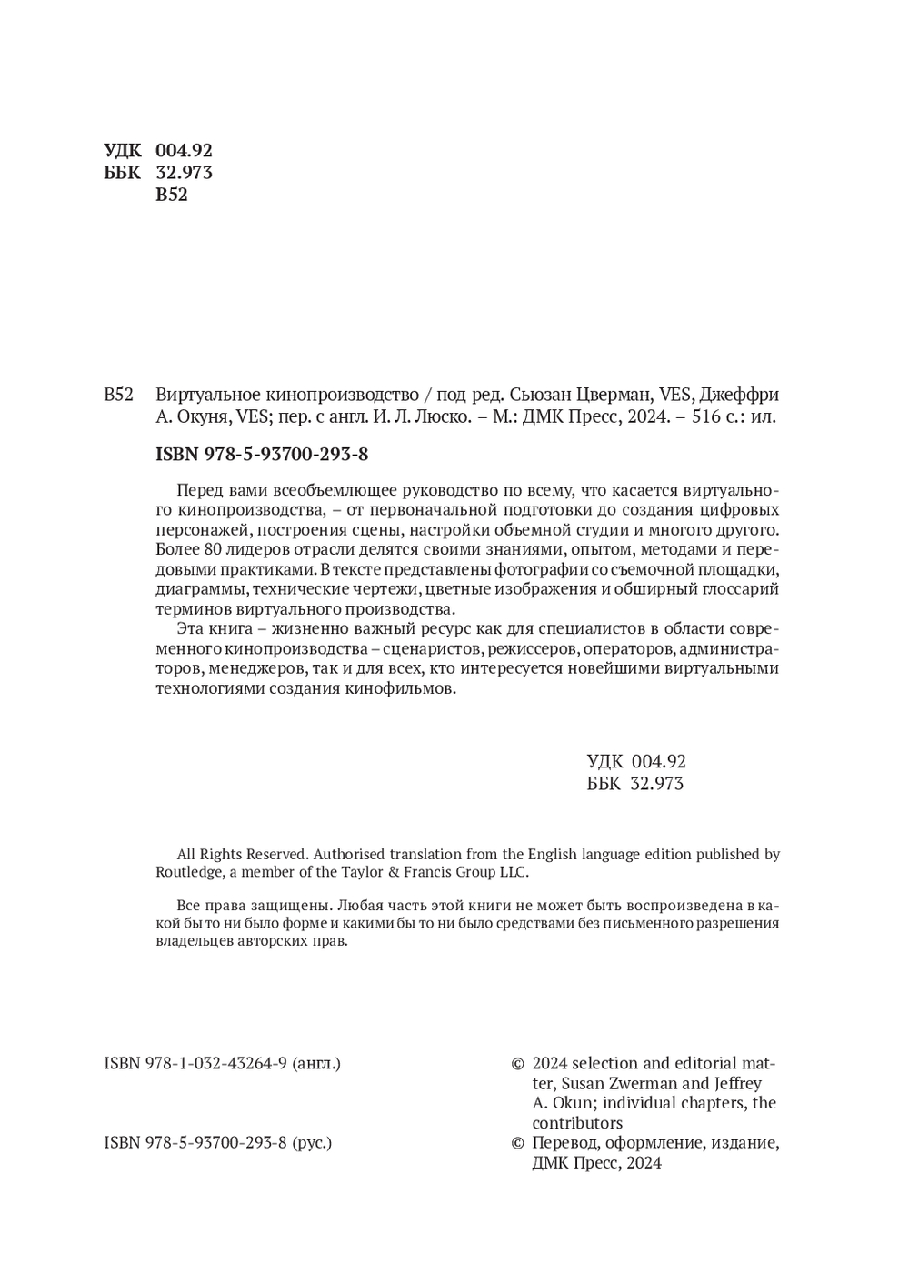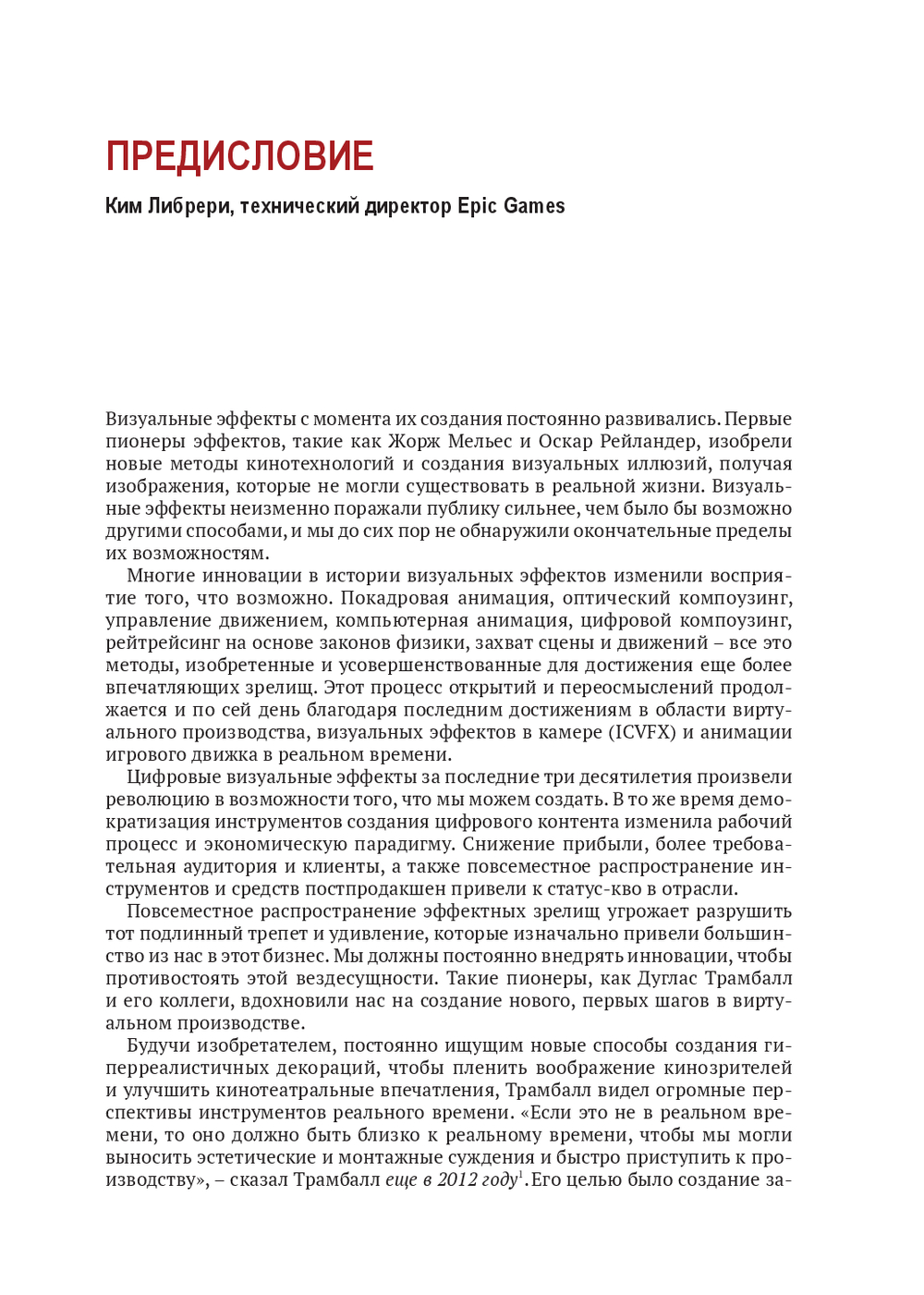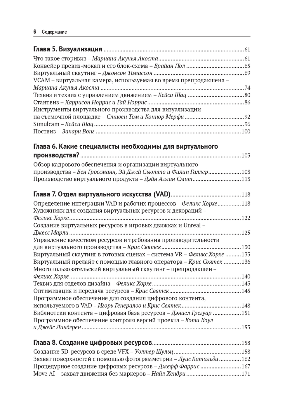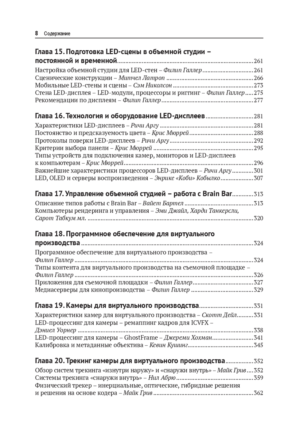 Более 80 лидеров отрасли делятся своими знаниями, опытом, методами и передовыми практиками. В книге представлены фотографии со съемочной площадки, диаграммы, технические чертежи, цветные изображения и обширный глоссарий терминов виртуального производства.