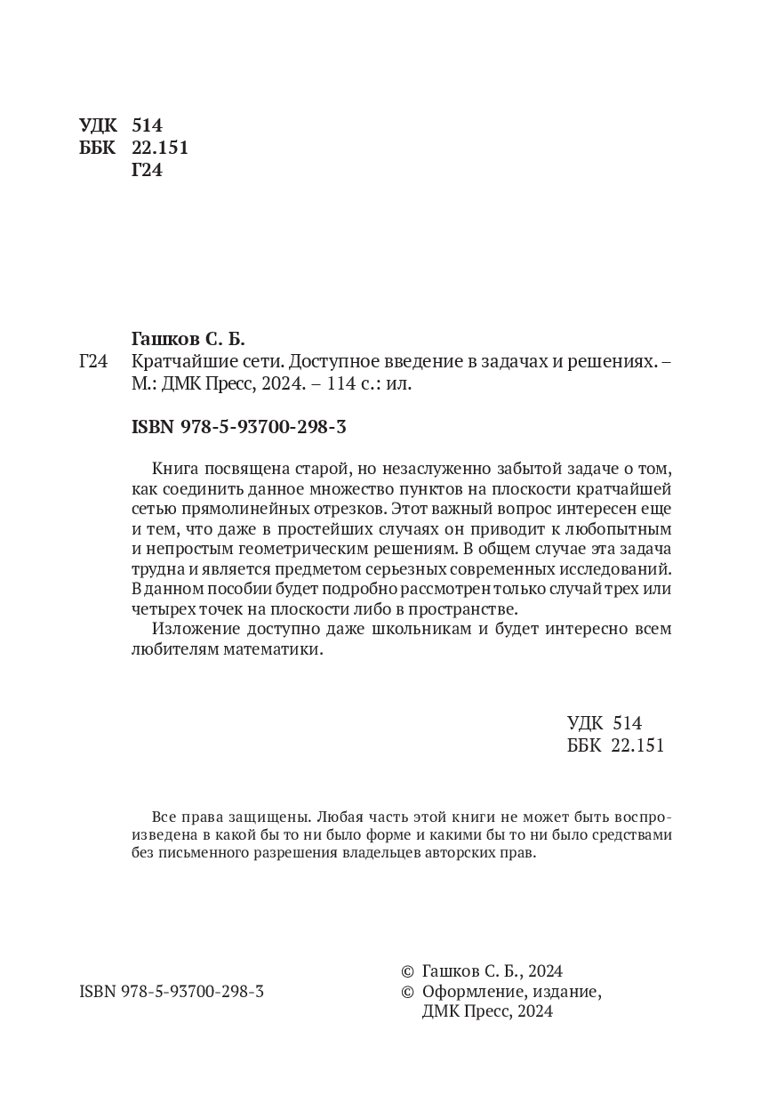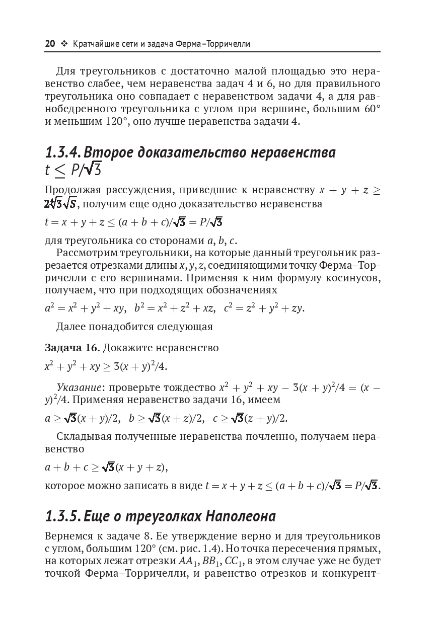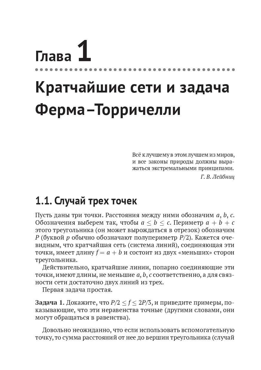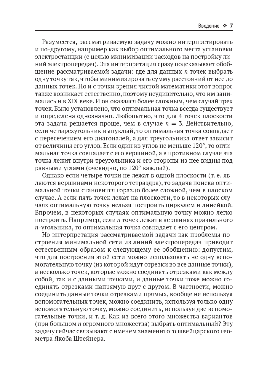 Книга посвящена старой, но незаслуженно забытой задаче о том, как соединить данное множество пунктов на плоскости кратчайшей сетью прямолинейных отрезков. Этот важный вопрос интересен еще и тем, что даже в простейших случаях он приводит к любопытным и непростым геометрическим решениям. В общем случае эта задача трудна и является предметом серьезных современных исследований. В данном пособии будет подробно рассмотрен только случай трех или четырех точек на плоскости либо в пространстве.