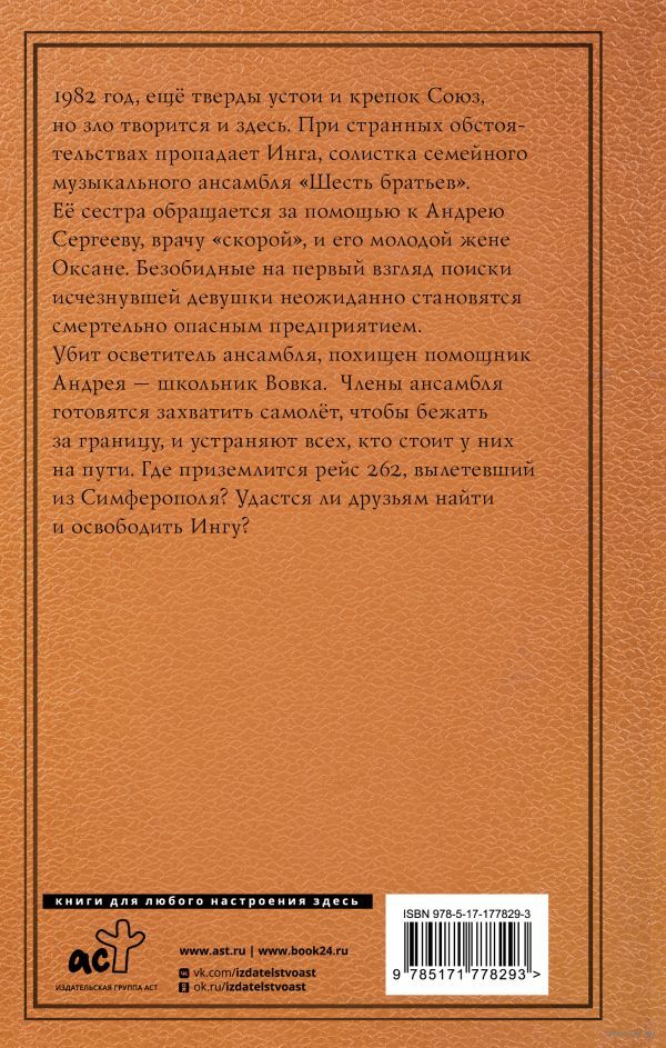 1982 год, еще тверды устои и крепок Союз, но зло творится и здесь. При странных обстоятельствах пропадает Инга, солистка семейного музыкального ансамбля "Шесть братьев". Её сестра обращается за помощью к Андрею Сергееву, врачу "скорой", и его молодой жене Оксане. Безобидные на первый взгляд поиски исчезнувшей девушки неожиданно становятся смертельно опасным предприятием. Убит осветитель ансамбля, похищен помощник Андрея – школьник Вовка. Члены ансамбля готовятся захватить самолёт, чтобы бежать за границу и устраняют всех, кто стоит у них на пути. Где приземлится рейс 262, вылетевший из Симферополя? Удастся ли друзьям найти и освободить Ингу?