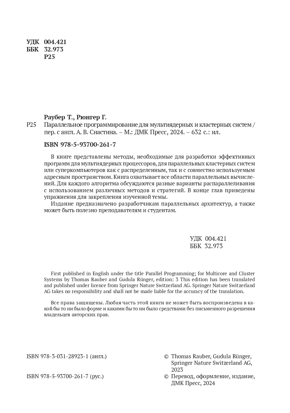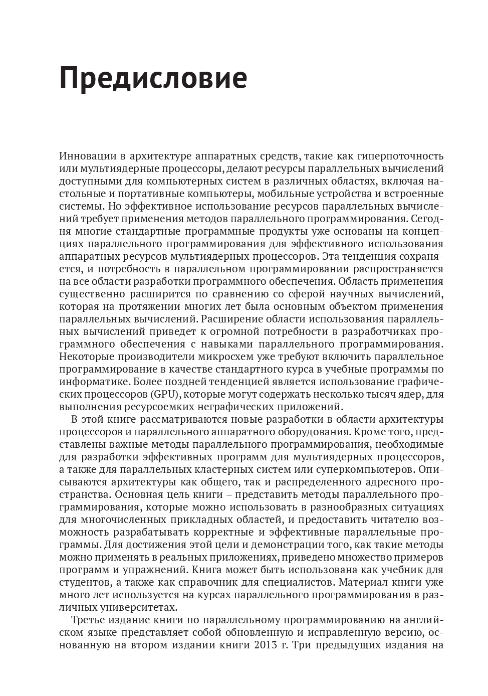 В книге представлены методы, необходимые для разработки эффективных программ для мультиядерных процессоров, для параллельных кластерных систем или суперкомпьютеров как с распределенным, так и с совместно используемым адресным пространством.
