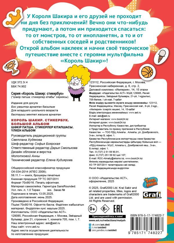 Открой альбом наклеек и начни своё творческое путешествие вместе с героями мультфильма "Король Шакир"!