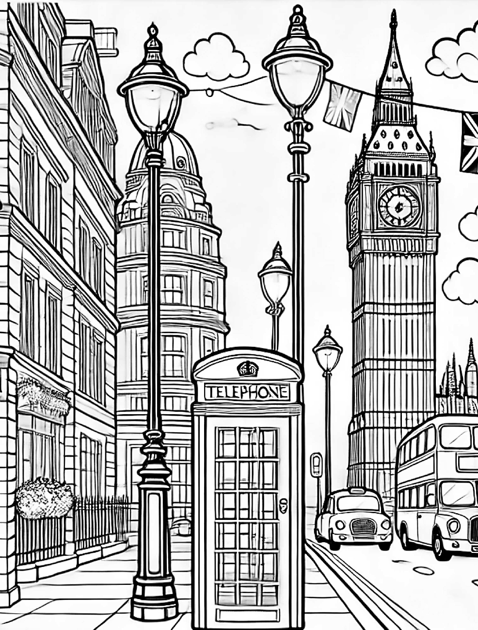 Эта раскраска – ваш личный билет в город контрастов, величия и непреходящего очарования. Тауэрский мост, Биг-Бен, Букингемский дворец и другие достопримечательности ждут вас на страницах раскраски. Возьмите в руки карандаши и фломастеры, включите воображение и создайте свой уникальный Лондон!