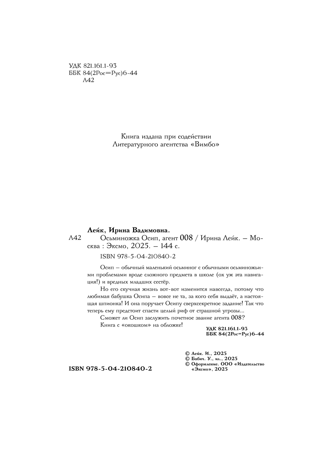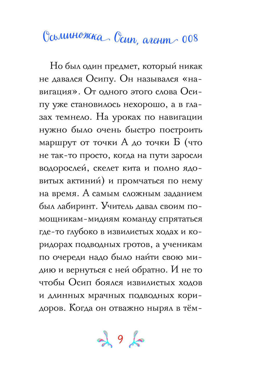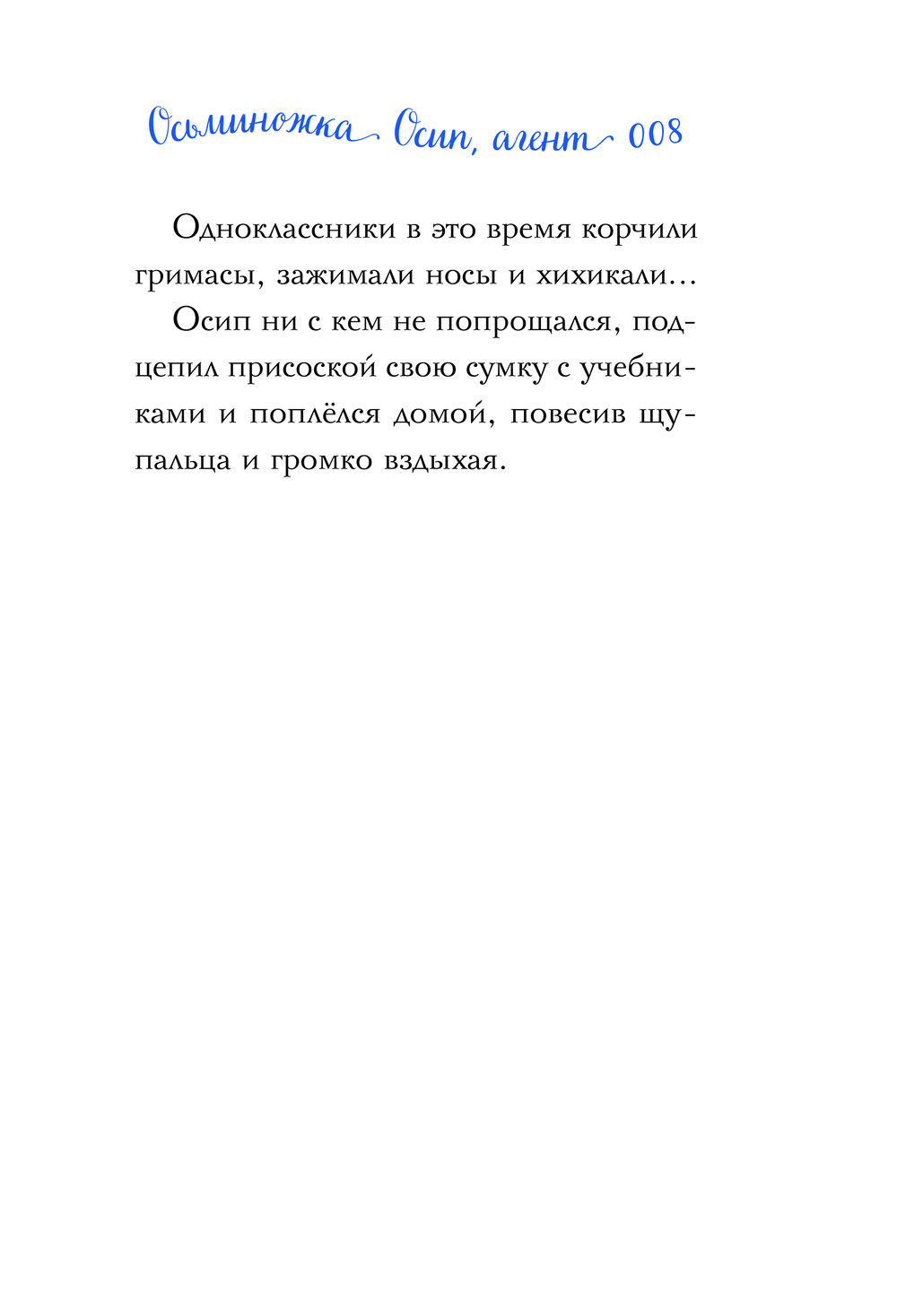 Осип – обычный маленький осьминог с обычными осьминожьими проблемами вроде сложного предмета в школе (ох уж эта навигация!) и вредных младших сестёр. Но его скучная жизнь вот-вот изменится навсегда, потому что любимая бабушка Осипа – вовсе не та, за кого себя выдаёт, а настоящая шпионка! И она поручает Осипу сверхсекретное задание! Так что теперь ему предстоит спасти целый риф от страшной угрозы… Сможет ли Осип заслужить почетное звание агента 008?