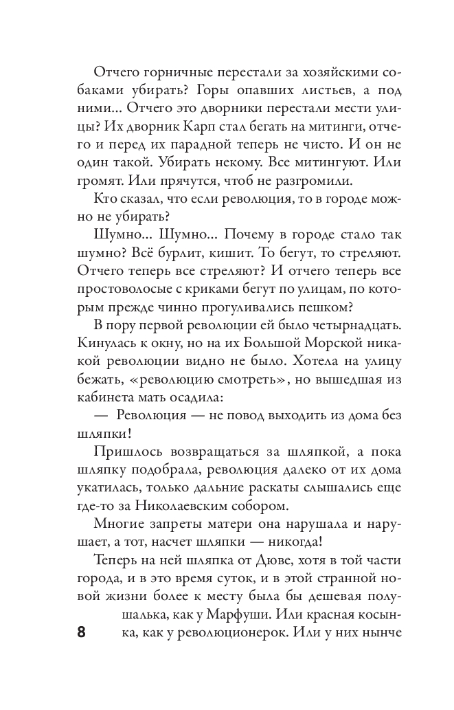 Читателю, знающему всё, что случится со страной дальше, остается только волноваться за Анну, выживет ли она в этом меняющемся мире, вдруг превратившимся в театр тающих теней.