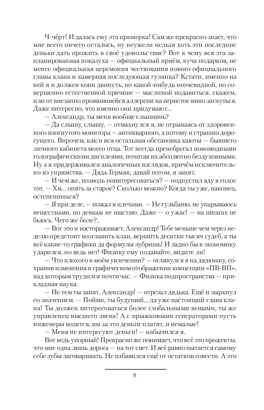 Теперь я предоставлен самому себе и могу начать всё сначала – под новым именем, без репутации, без друзей, почти без денег, но зато и без кланового гадюшника и постоянных политических интриг. Ну и самое главное, есть идея, куда приложить руки: я придумал, как извлечь из подпространства "затонувшие" корабли.