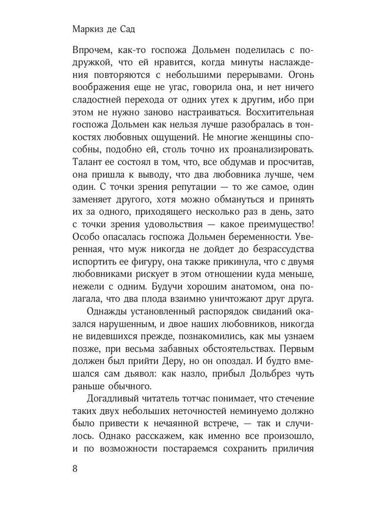 Читателю сборника предлагается погрузиться в XVIII век – один из самых ярких в истории человечества. Проводниками послужат великие французские писатели Маркиз де Сад и Аббат Прево, впервые объединенные под одной обложкой. Инструментами станут короткие истории, вымышленные и невымышленные, которые перекликаются друг с другом своим объемом и забавностью, передавая аромат эпохи Просвещения и абсолютной власти удовольствий.