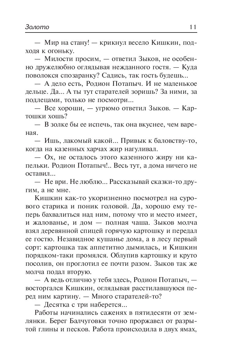 Роман "Золото" дает яркую панораму жизни уральских золотоискателей в 60-е годы XIX века. Только что отменено крепостное право. И люди часто не понимают, как распорядиться внезапно свалившейся на них свободой.