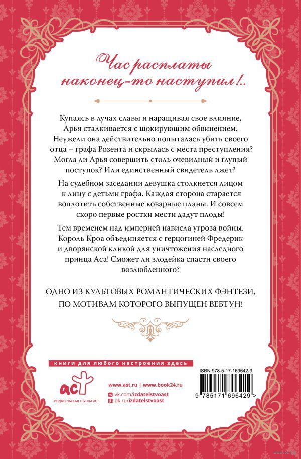 Купаясь в лучах славы и наращивая свое влияние, Арья сталкивается с шокирующим обвинением. Неужели она действительно попыталась убить своего отца – графа Розента и скрылась с места преступления? Могла ли Арья совершить столь очевидный и глупый поступок? Или единственный свидетель лжет?