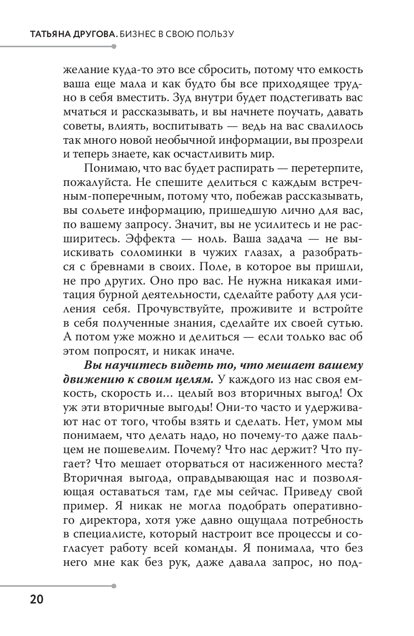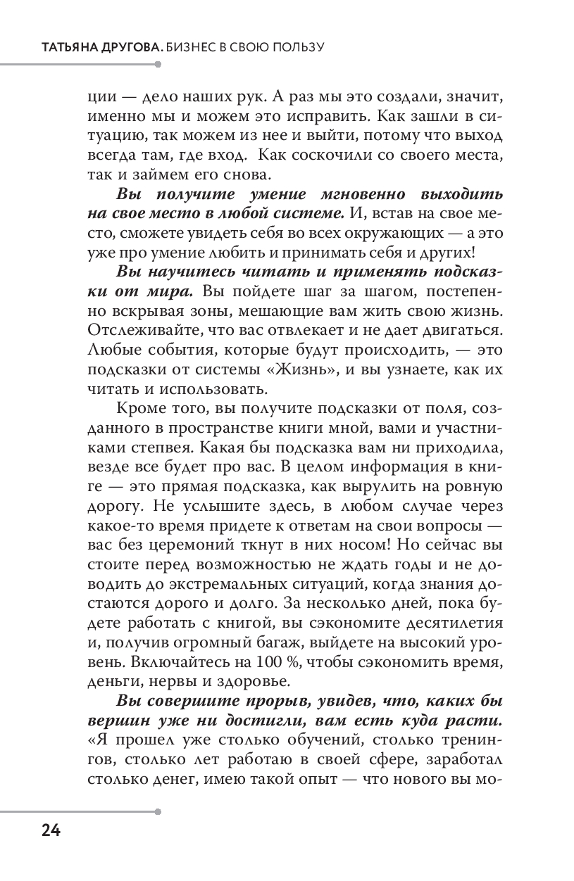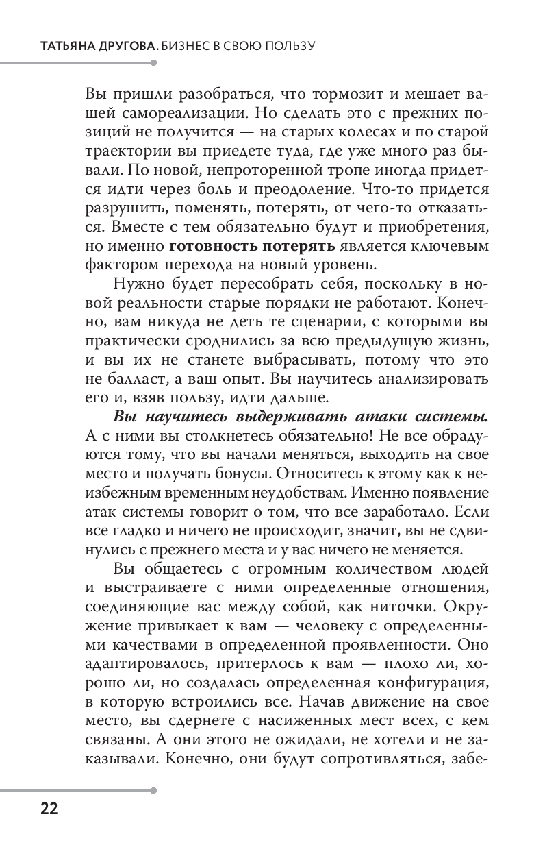 В этой книге Татьяна Другова делится своим методом ролевых трансформаций, позволяющим понять, кто вы в этом мире и что должны делать каждый день, чтобы занять свое место в системе "Жизнь".